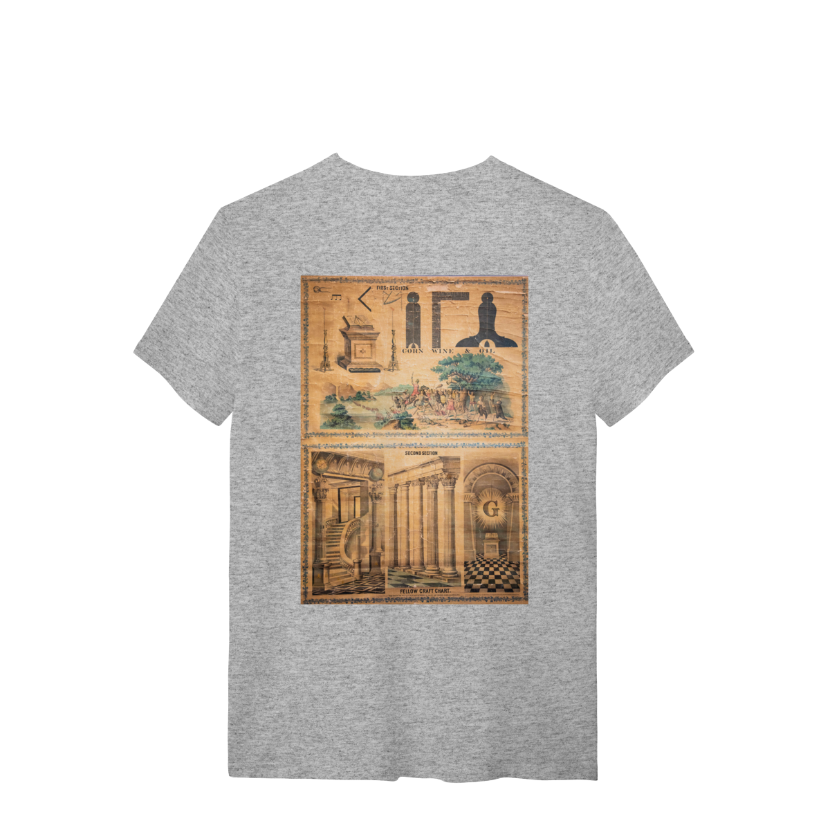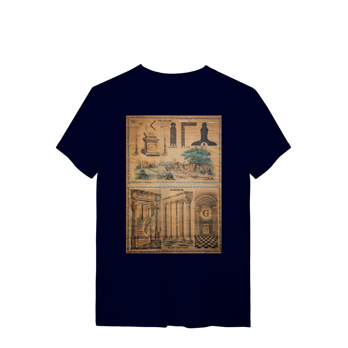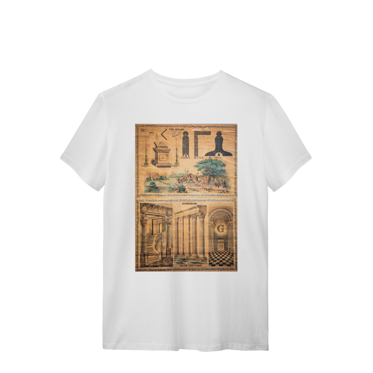 Esta camisa apresenta um design exclusivo inspirado em um painel antigo de Companheiro Maçom, evocando a riqueza simbólica e histórica da Maçonaria. Com detalhes intricados e uma estética clássica, o painel representa elementos fundamentais da jornada maçônica, como o compasso, o esquadro, e outros símbolos tradicionais, que são ícones de sabedoria, equilíbrio e crescimento pessoal.
