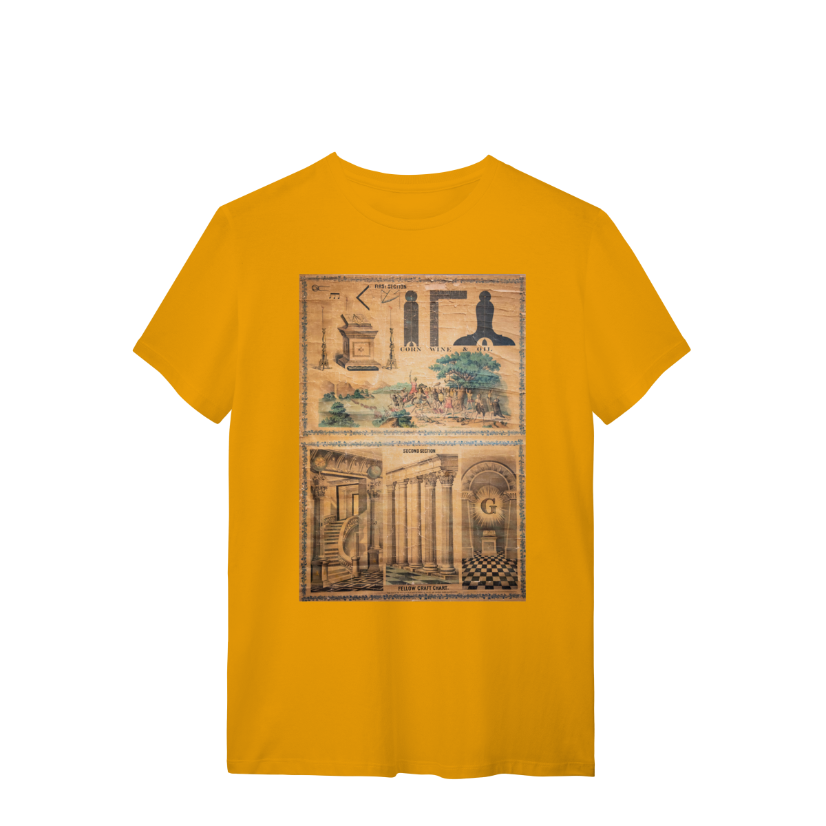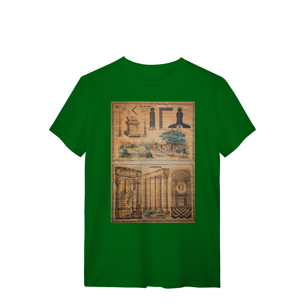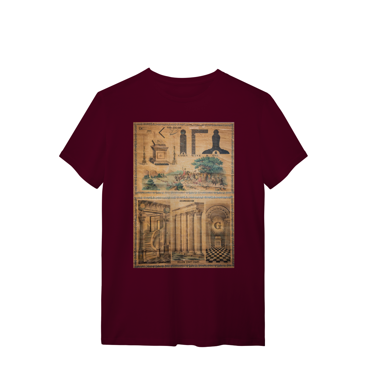 Esta camisa apresenta um design exclusivo inspirado em um painel antigo de Companheiro Maçom, evocando a riqueza simbólica e histórica da Maçonaria. Com detalhes intricados e uma estética clássica, o painel representa elementos fundamentais da jornada maçônica, como o compasso, o esquadro, e outros símbolos tradicionais, que são ícones de sabedoria, equilíbrio e crescimento pessoal.