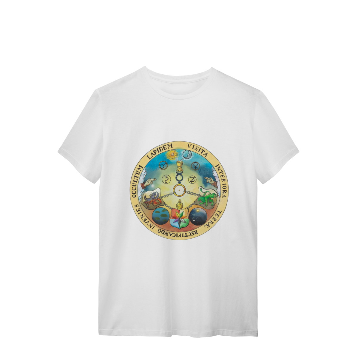 A camisa VITRIOL carrega em sua essência um simbolismo profundo, remetendo à tradição esotérica da maçonaria. O termo “VITRIOL” é um acrônimo de "Visita Interiora Terrae Rectificando Invenies Occultum Lapidem", que traduzido significa “Visita o interior da terra, e, retificando, encontrarás a pedra oculta”. Essa frase simboliza a busca pelo autoconhecimento e pela transformação interior, conceitos fundamentais na maçonaria e em diversas práticas esotéricas.