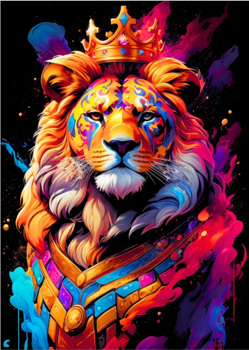 Deixe sua casa vibrar com a energia majestosa e real que emana do nosso Quadro Realeza Selvagem: O Leão Coroado em Esplendor Colorido. Este quadro não é apenas uma peça de arte, é um convite para se conectar com sua força interior e liderança natural a cada vez que você o contempla.