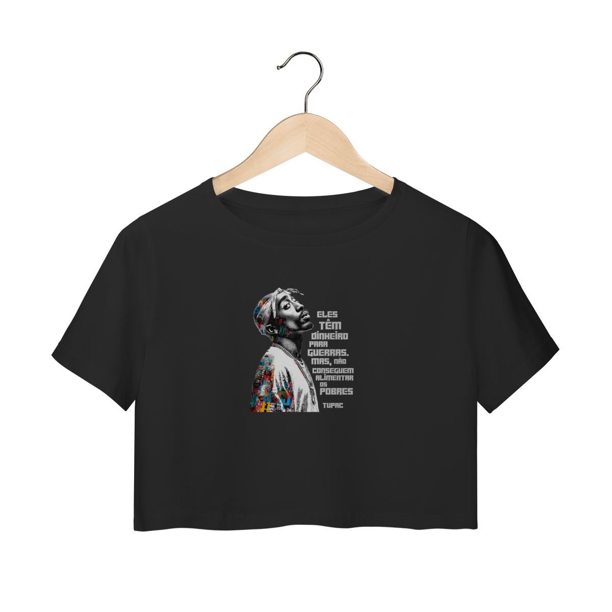 O cropped tem caimento moderno, confortável e urbano, perfeito para quem ocupa espaços com atitude e não aceita o silêncio diante das desigualdades. A frase de Tupac atravessa gerações e dialoga diretamente com quem questiona o sistema, enxerga as contradições do poder e acredita que a arte é ferramenta de luta e expressão. É para quem entende que vestir também é um ato político.
