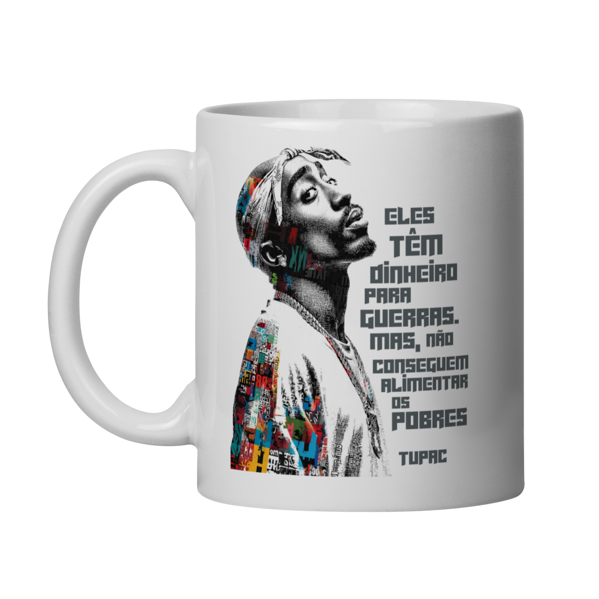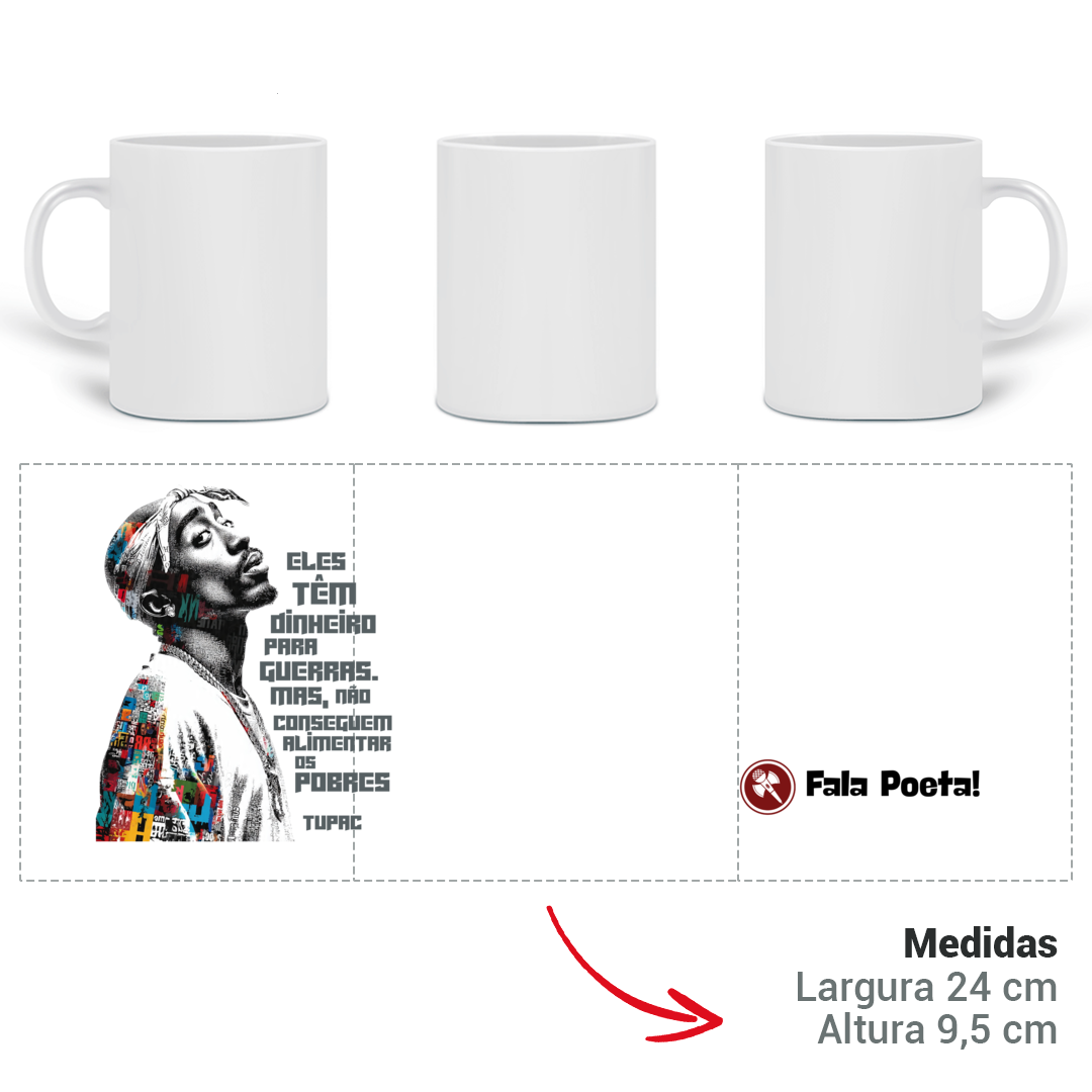 A Caneca de Porcelana da Loja Fala Poeta! não é só um objeto do dia a dia — é um manifesto nas suas mãos. Com a frase impactante de Tupac “Eles têm dinheiro para guerras, mas não conseguem alimentar os pobres”, essa caneca carrega a voz de quem sempre usou a arte como ferramenta de denúncia, consciência e resistência.