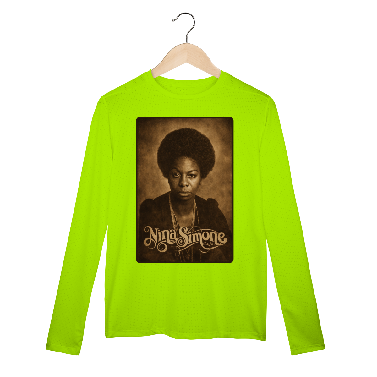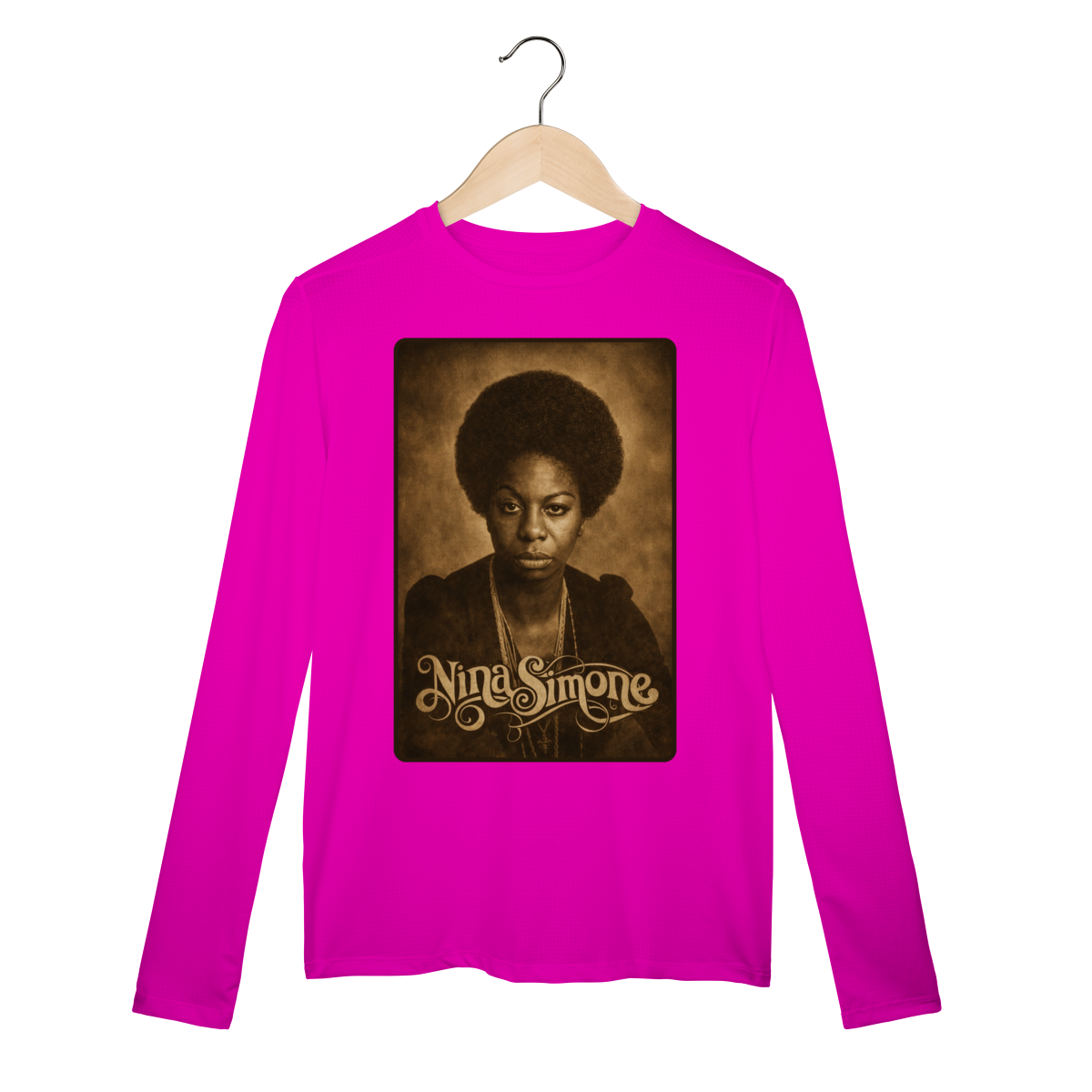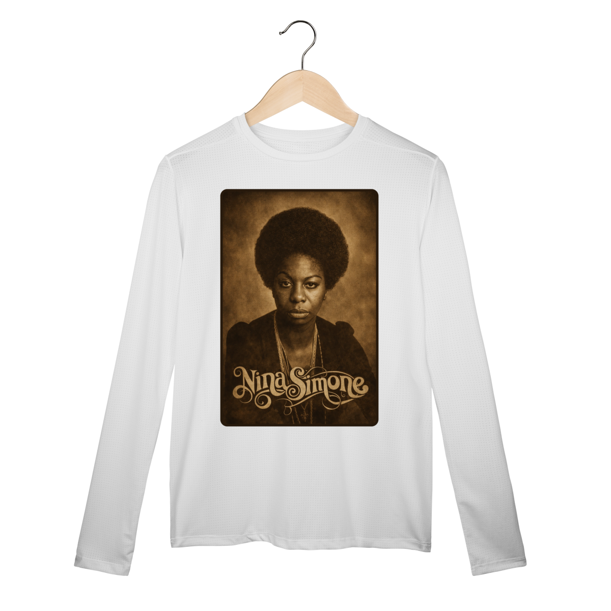 A Camiseta Manga Longa Sport Dry UV da Loja Fala Poeta! – Nina Simone 01 é mais do que uma peça de vestuário: é um manifesto de consciência, arte e resistência. Criada em homenagem à eterna Nina Simone, voz potente do jazz, do blues e da luta pelos direitos civis, essa estampa carrega a força de quem transformou música em arma política e poesia em liberdade.