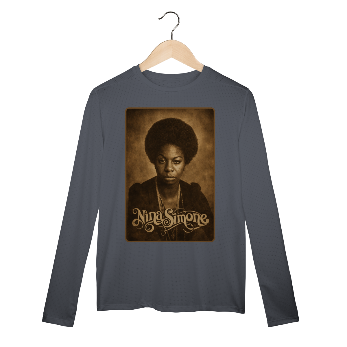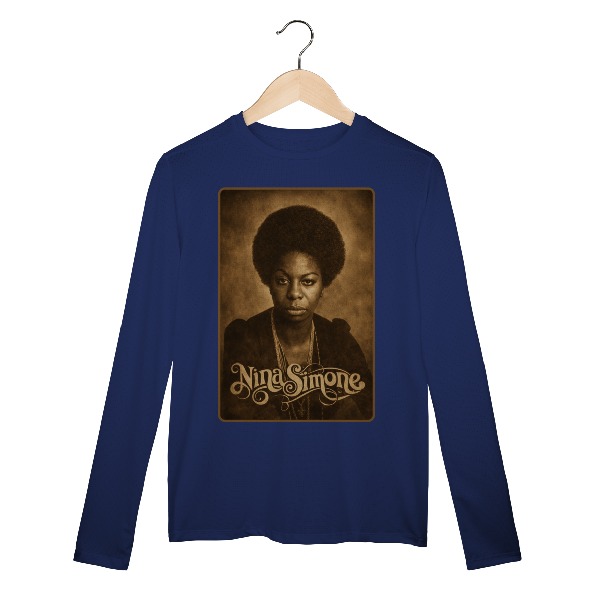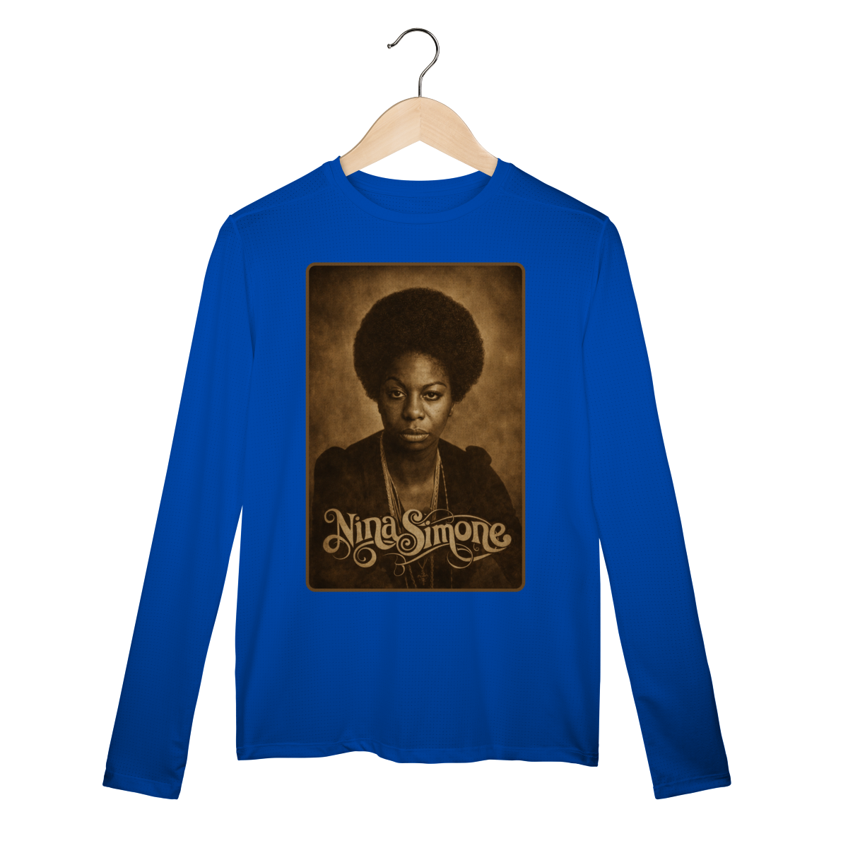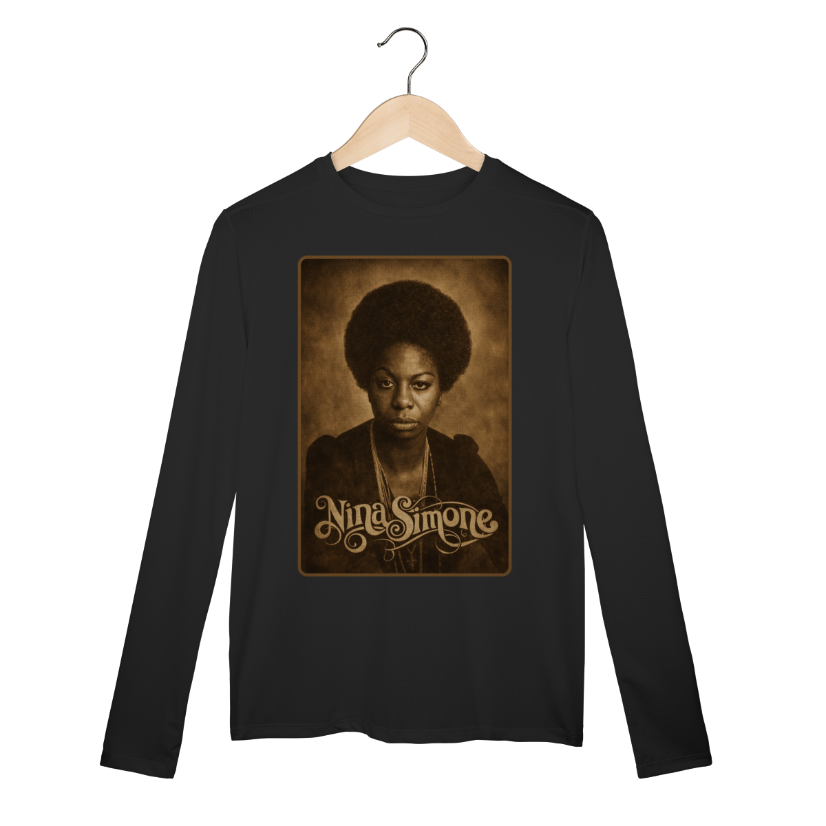 A Camiseta Manga Longa Sport Dry UV da Loja Fala Poeta! – Nina Simone 01 é mais do que uma peça de vestuário: é um manifesto de consciência, arte e resistência. Criada em homenagem à eterna Nina Simone, voz potente do jazz, do blues e da luta pelos direitos civis, essa estampa carrega a força de quem transformou música em arma política e poesia em liberdade.