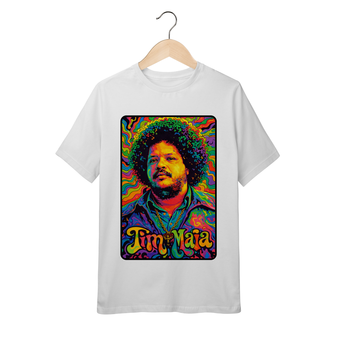A Camiseta Infantil Fala Poeta! Tim Maia Psicodélico (10 a 14 anos) é mais do que uma peça de roupa: é um convite para que a nova geração conheça e celebre um dos maiores ícones da música brasileira. A estampa traz Tim Maia em uma arte psicodélica vibrante, inspirada nos anos 60 e 70, com cores intensas e formas fluidas que despertam imaginação, criatividade e atitude.