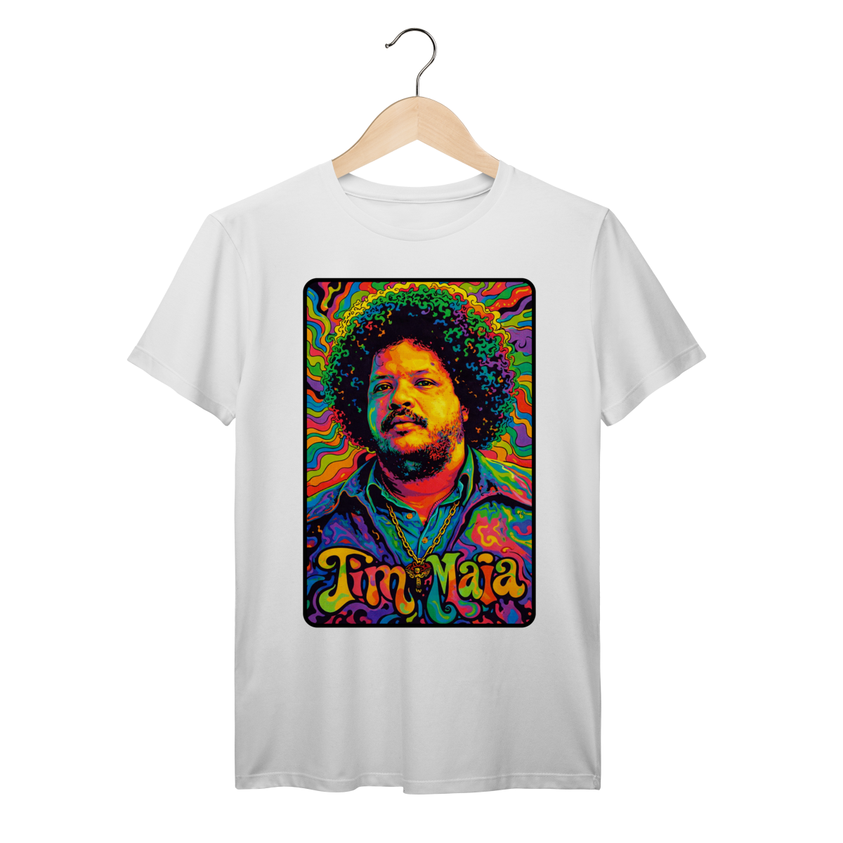 A Camiseta Clássica Premium Fala Poeta! – Tim Maia Psicodélico é um manifesto visual para quem vive a música como identidade e liberdade. Inspirada na estética psicodélica dos anos 60 e 70, a estampa traz Tim Maia em uma explosão de cores, formas e vibrações que remetem à era do soul, do funk e da contracultura. É uma homenagem intensa a um dos maiores ícones da música brasileira, feita para quem carrega atitude, autenticidade e amor pela música no peito.