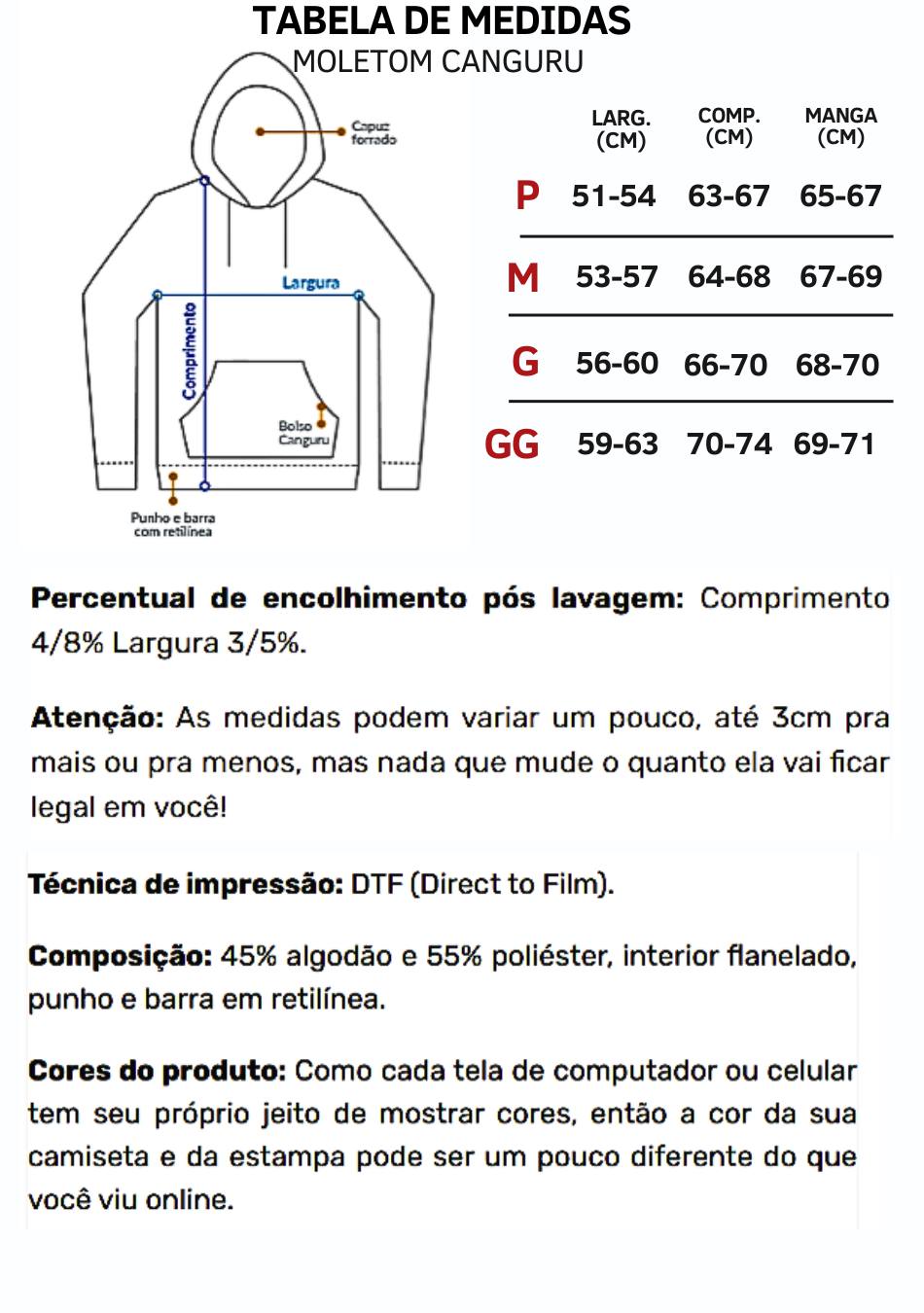 Material: Moletom 2 cabos, gramatura 310.
