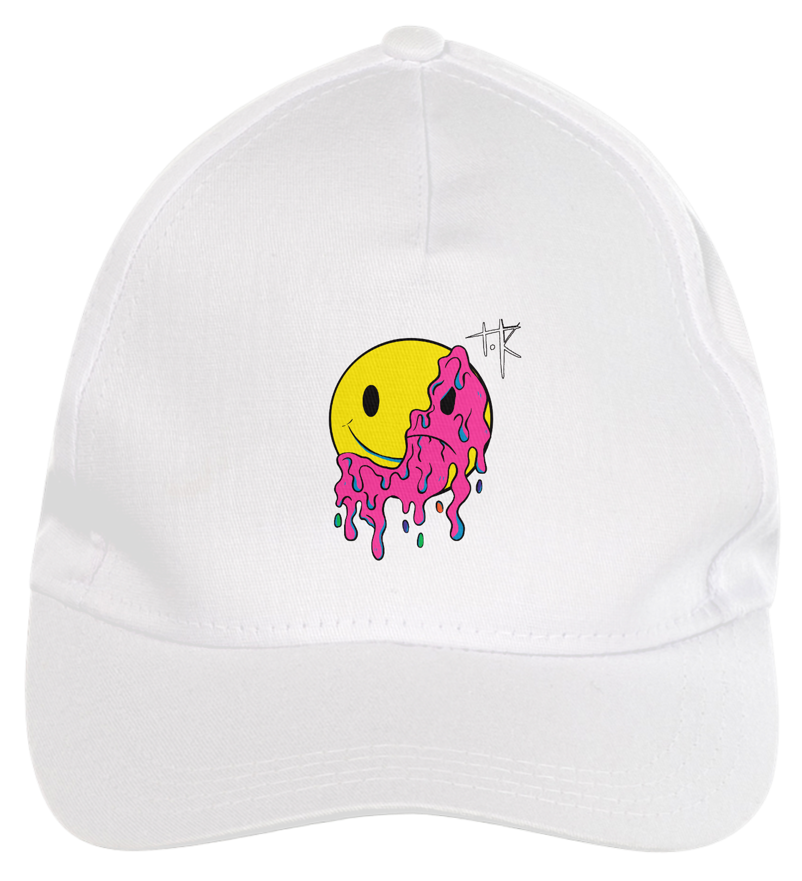 Boné americano com transfer frontal em alta qualidade, aba curva e fecho em tira totalmente regulável com pinos. O modelo veste tamanho "único".