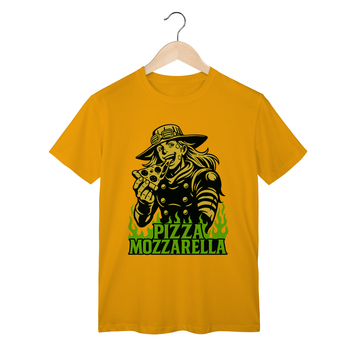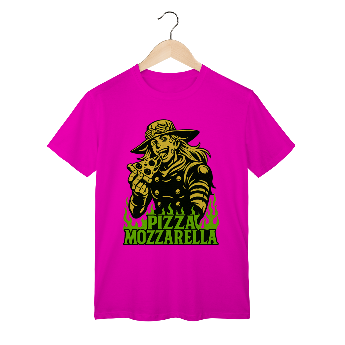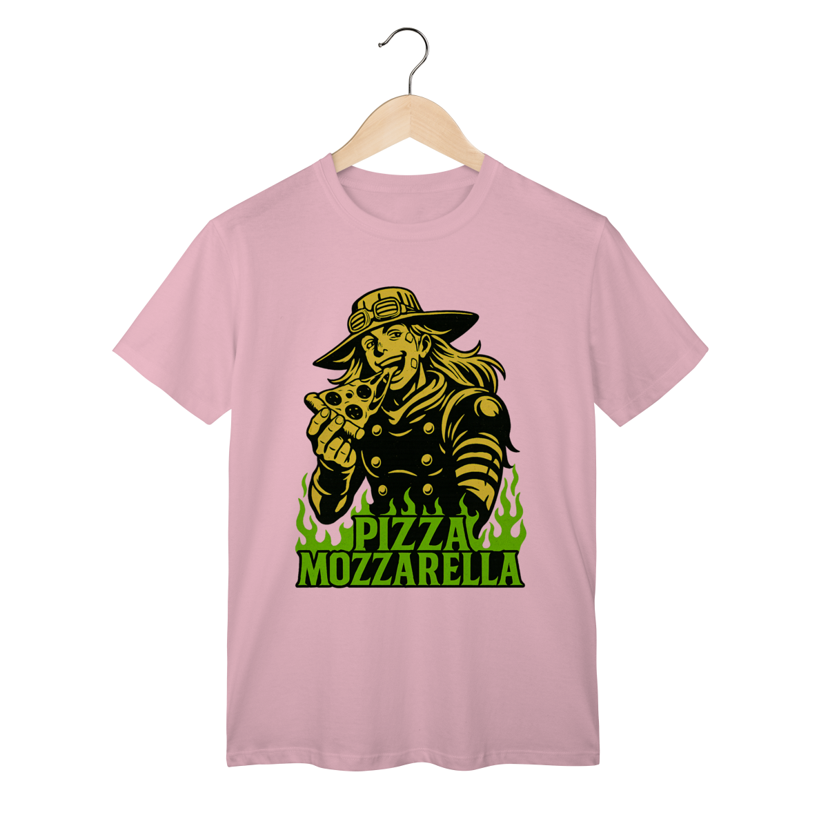 Direto de Steel Ball Run, o lendário Gyro Zeppeli agora chega ao seu guarda-roupa com todo o carisma e irreverência que só ele tem! Essa camiseta exclusiva traz a icônica referência à inesquecível Pizza Mozzarella, um dos momentos mais marcantes e divertidos da parte 7 de JoJo’s Bizarre Adventure. Feita com tecido de alta qualidade, é perfeita para quem quer unir estilo, conforto e, claro, muita personalidade. Vista essa peça e carregue consigo não só o legado de Gyro, mas também um dos memes mais queridos pelos fãs de JoJo em todo o mundo. Uma verdadeira joia para qualquer colecionador ou apaixonado pela obra de Araki!