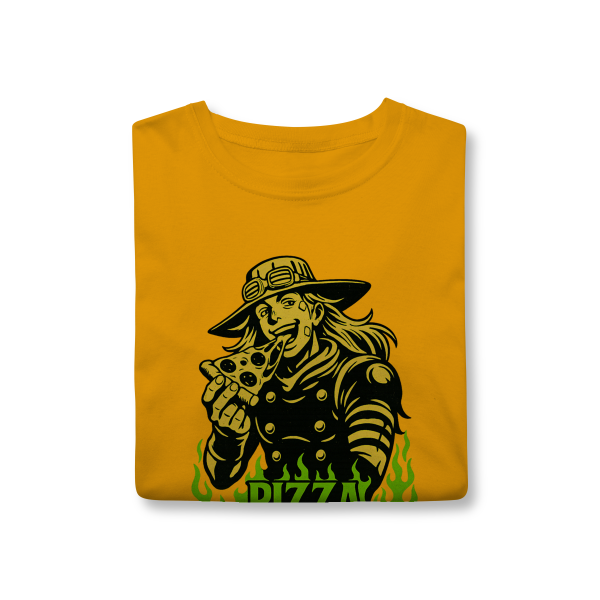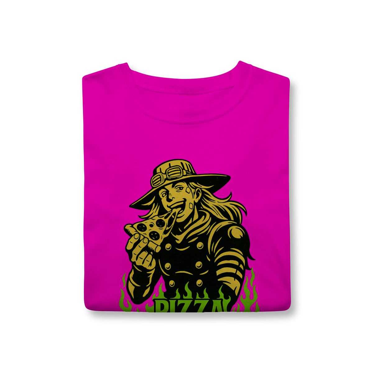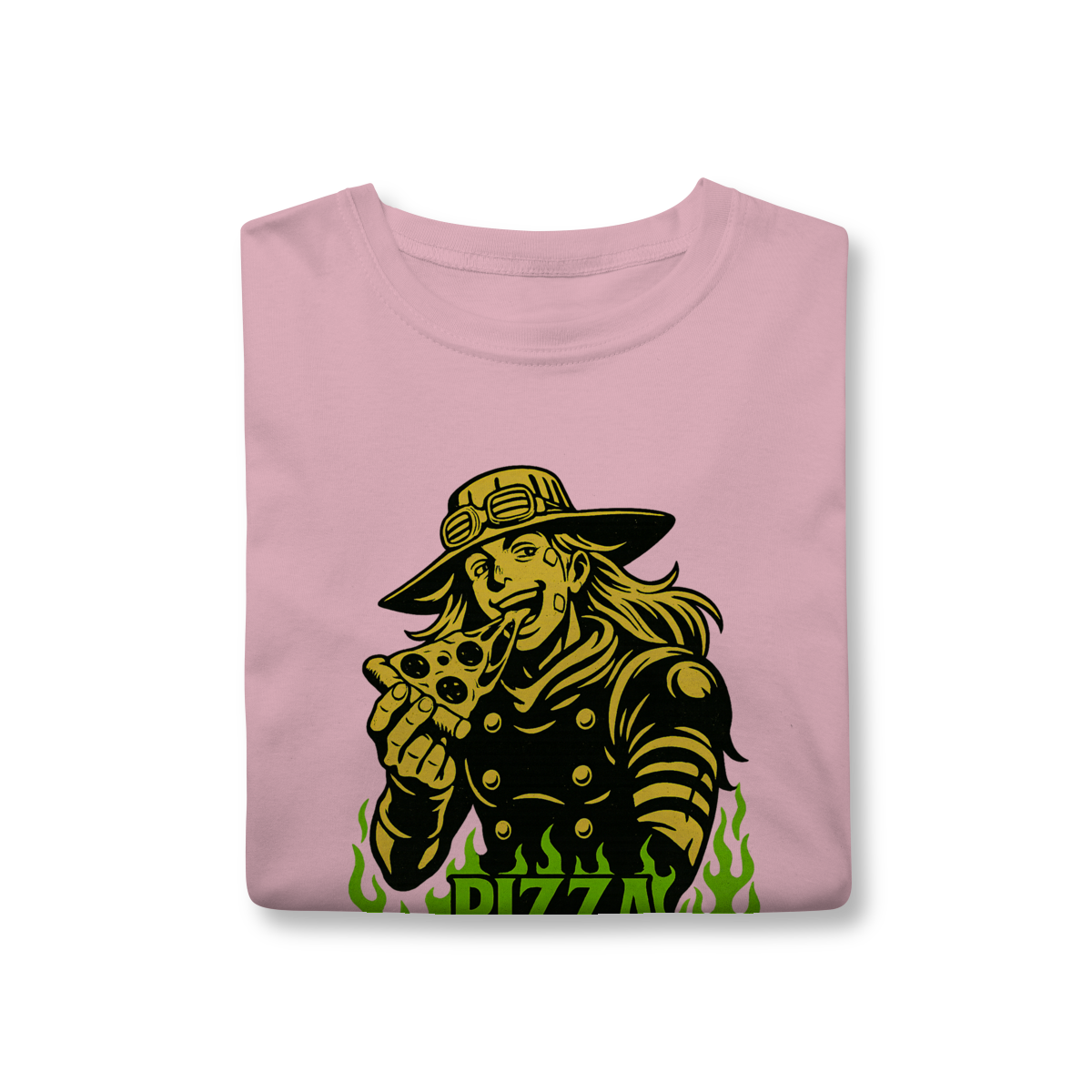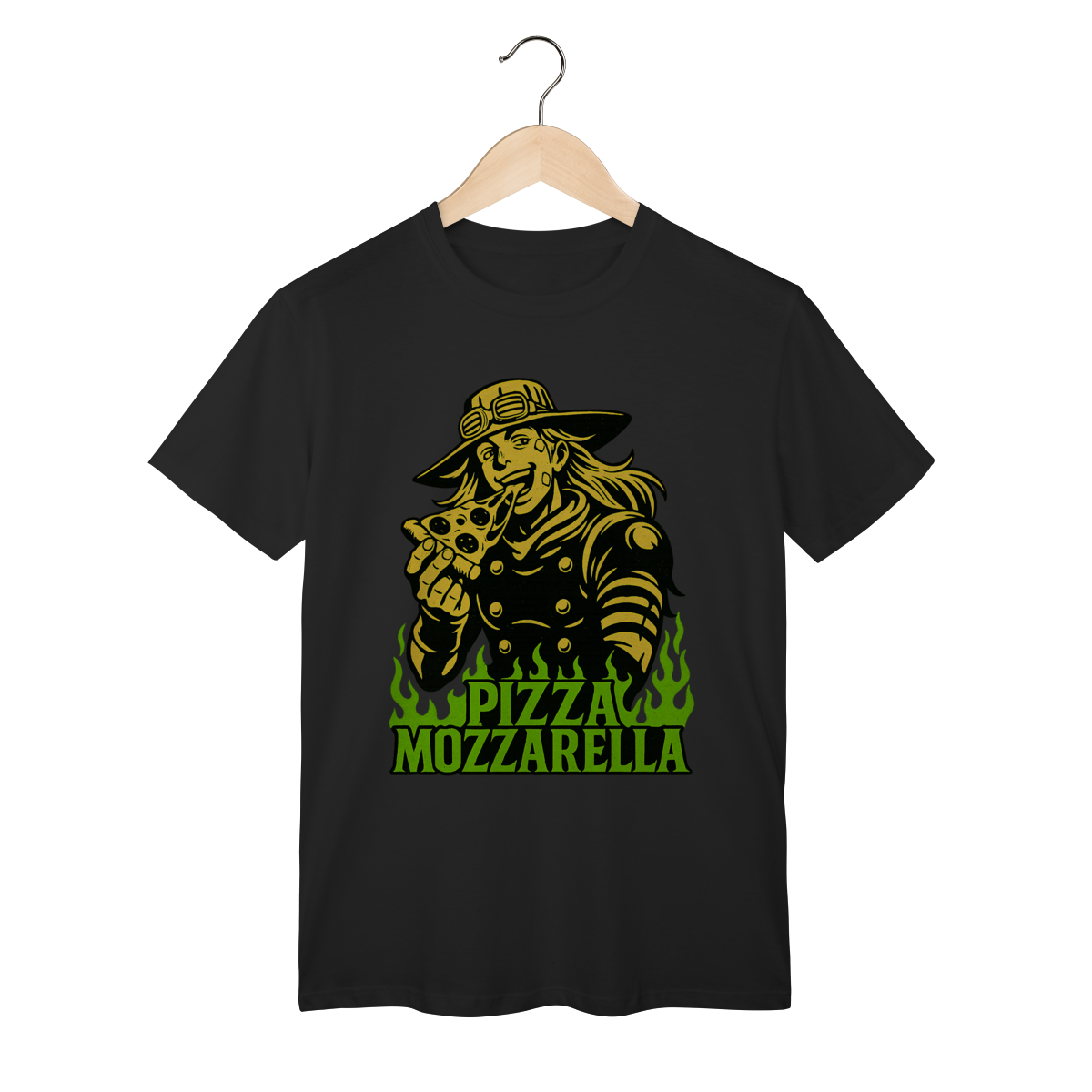 Direto de Steel Ball Run, o lendário Gyro Zeppeli agora chega ao seu guarda-roupa com todo o carisma e irreverência que só ele tem! Essa camiseta exclusiva traz a icônica referência à inesquecível Pizza Mozzarella, um dos momentos mais marcantes e divertidos da parte 7 de JoJo’s Bizarre Adventure. Feita com tecido de alta qualidade, é perfeita para quem quer unir estilo, conforto e, claro, muita personalidade. Vista essa peça e carregue consigo não só o legado de Gyro, mas também um dos memes mais queridos pelos fãs de JoJo em todo o mundo. Uma verdadeira joia para qualquer colecionador ou apaixonado pela obra de Araki!