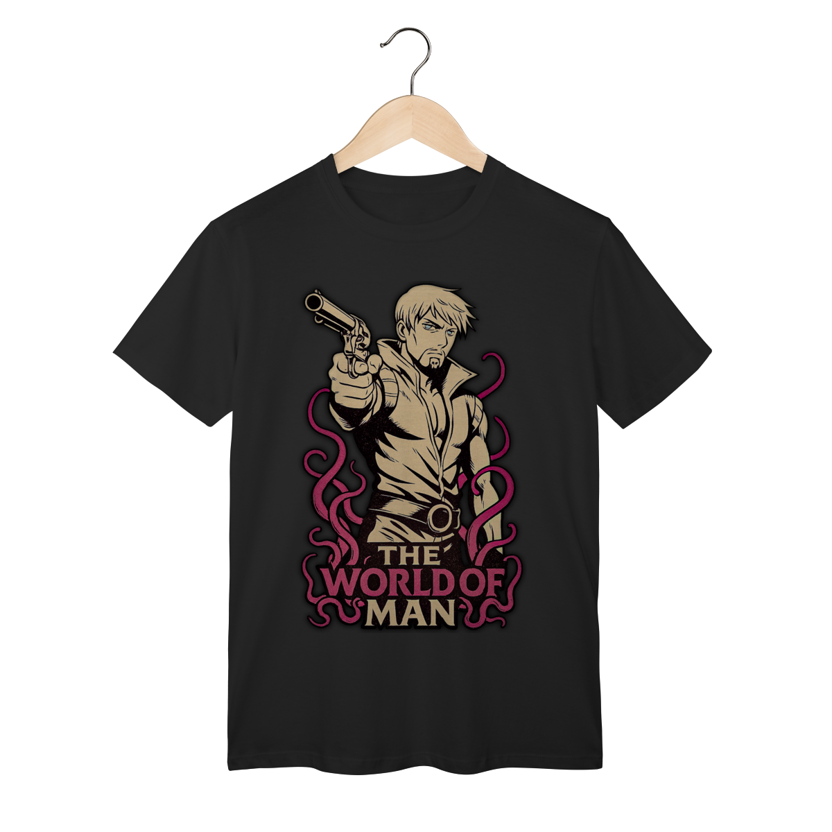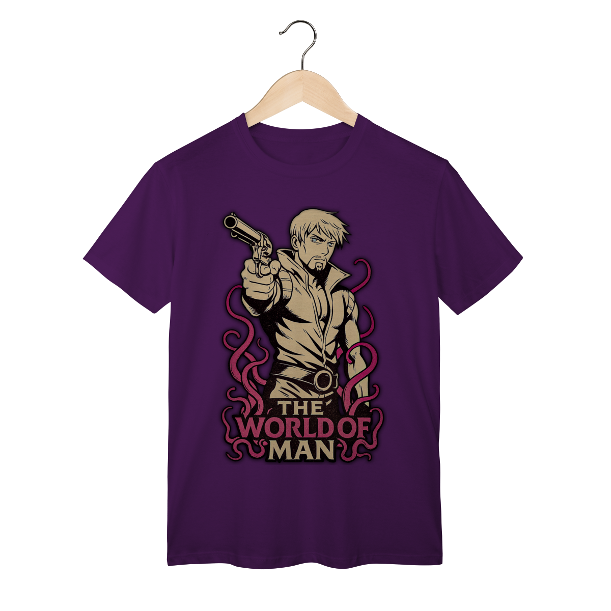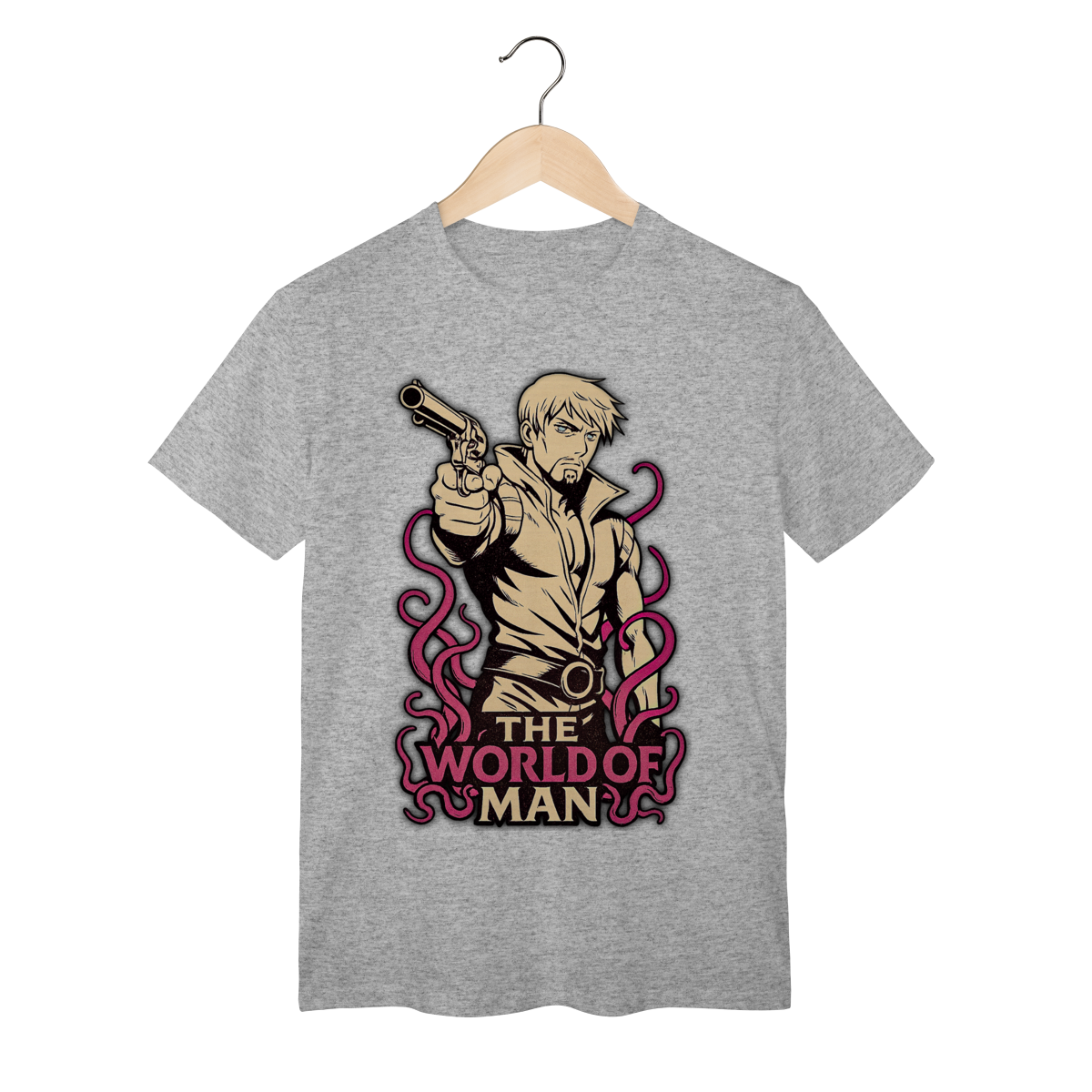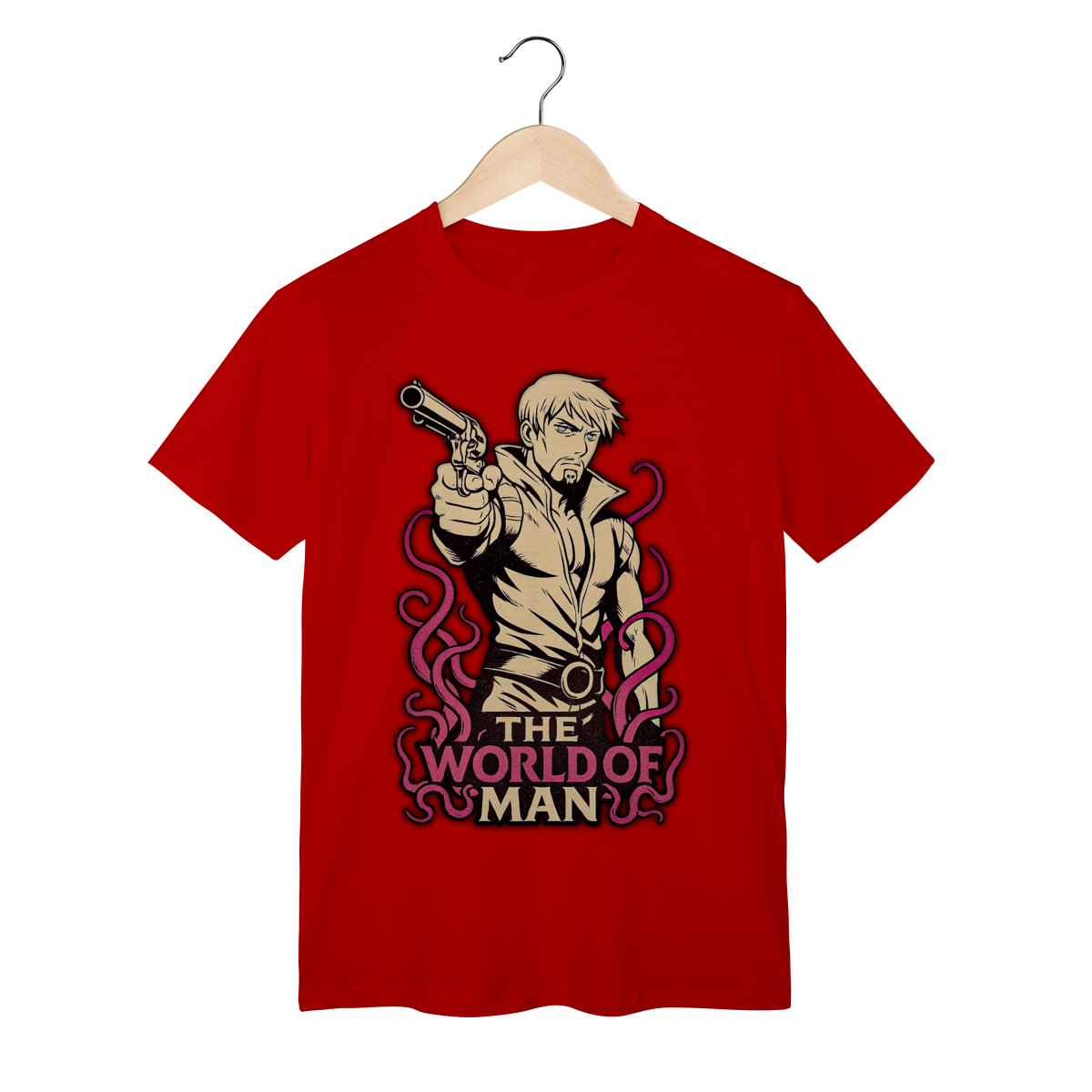 Traga a intensidade do duelo para o seu estilo com a camiseta inspirada em Ringo Roadagain, um dos antagonistas mais marcantes de Steel Ball Run. O design exclusivo homenageia a filosofia de vida do personagem, refletida em sua icônica frase sobre The World of Man, carregando toda a atmosfera séria e implacável desse pistoleiro inesquecível. Produzida em tecido confortável e resistente, essa peça é perfeita para fãs que valorizam não só os protagonistas, mas também os personagens complexos e cheios de significado do universo JoJo. Mais do que uma camiseta, é um símbolo de honra, determinação e da aura única que só Ringo transmite.