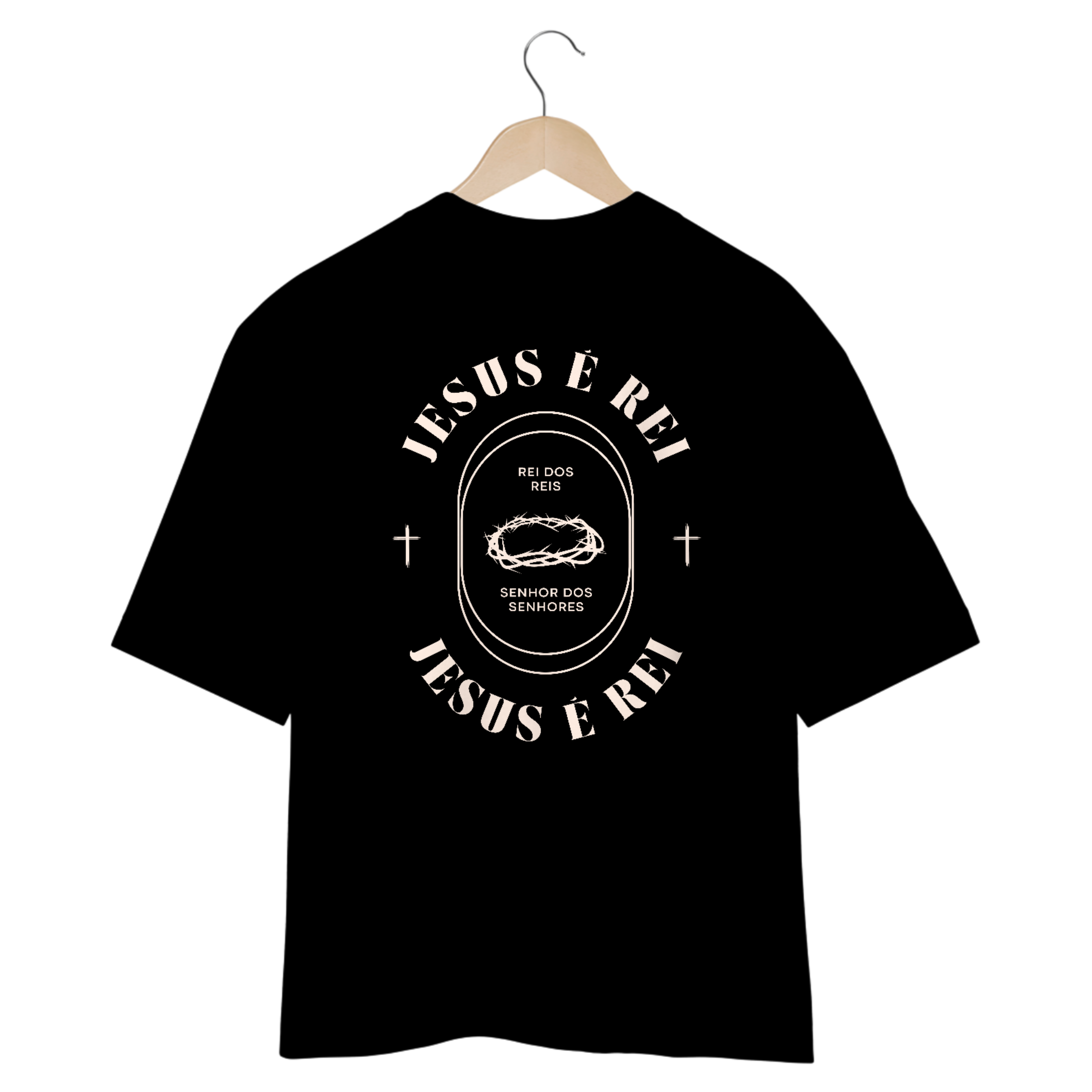 Camiseta Oversized "Jesus É Rei" - estilo e fé em uma só peça! Confortável, moderna e perfeita para expressar sua crença. Tecido de alta qualidade com caimento despojado para combinar com qualquer look.