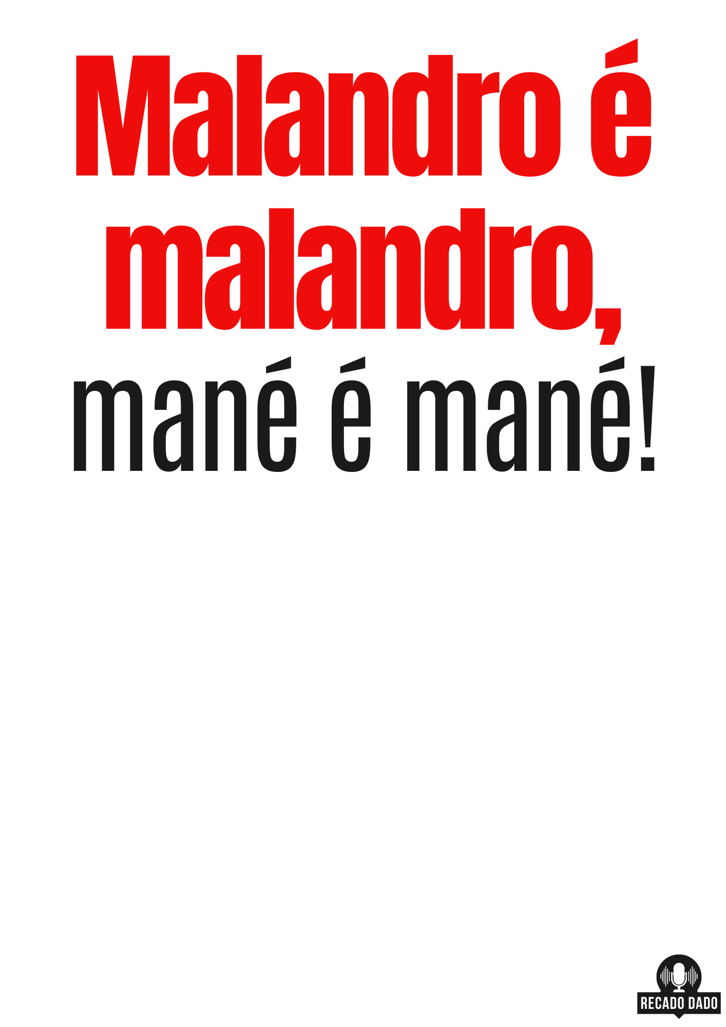 Expresse todo o seu amor pelo samba com esta maravilhosa camiseta com a frase icônica "malandro é malandro, mané é mané!" do talentoso sambista Diogo Nogueira. Feita com material de alta qualidade e impressão durável, esta camiseta é perfeita para os amantes do samba de raiz. Com design exclusivo e cheio de estilo, esta camiseta é ideal para quem gosta de exibir sua paixão pela música brasileira. Adquira já a sua Camiseta de Samba e mostre que você é malandro de verdade!  "Recado Dado: camisetas criativas que falam por você!"