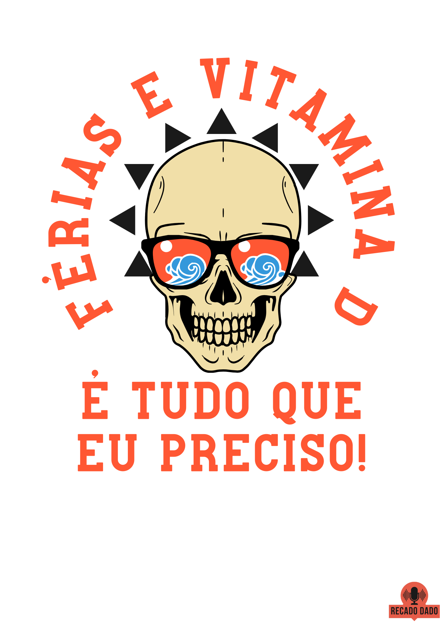Aproveite agora mesmo e garanta a sua camiseta com estampa de caveira e frase divertida "Férias e vitamina D é tudo que eu preciso!", e esteja preparado para arrasar com estilo e irreverência!