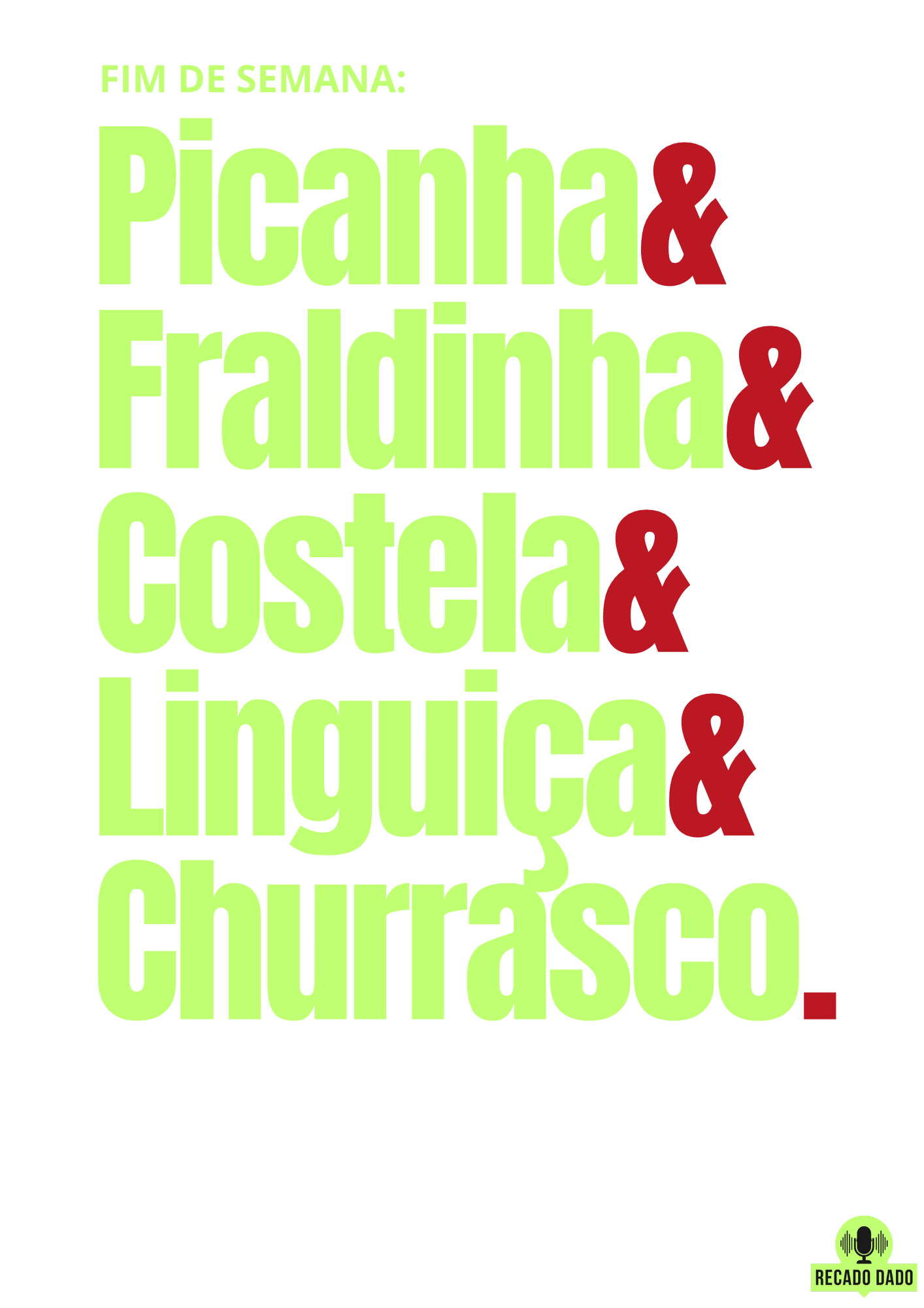 A camiseta frase "Fim de semana: picanha, fraldinha, costela, linguiça e churrasco" é perfeita para os amantes de churrasco! Feita com material de alta qualidade, ela é confortável e durável, ideal para usar durante os preparativos e celebrações dos seus churrascos favoritos. Com seu design exclusivo, essa camiseta tem tudo para se tornar a peça favorita do churrasqueiro de plantão. Seja você um mestre das brasas ou alguém que simplesmente adora comer um bom churrasco, essa camiseta vai mostrar ao mundo a sua paixão e estilo únicos. Garanta a sua agora mesmo e torne seus fins de semana ainda mais saborosos e estilosos com a camiseta frase "Fim de semana: picanha, fraldinha, costela, linguiça e churrasco".