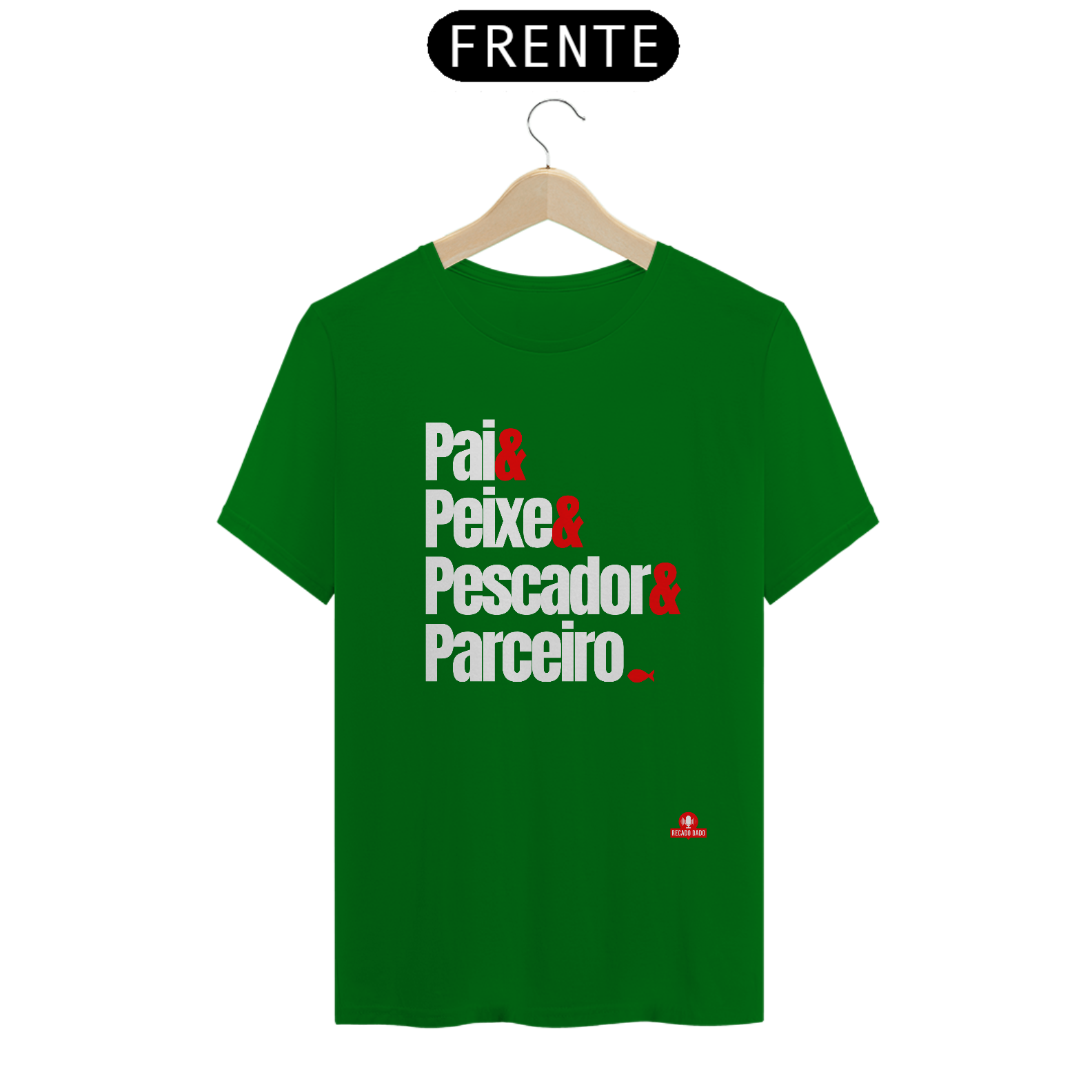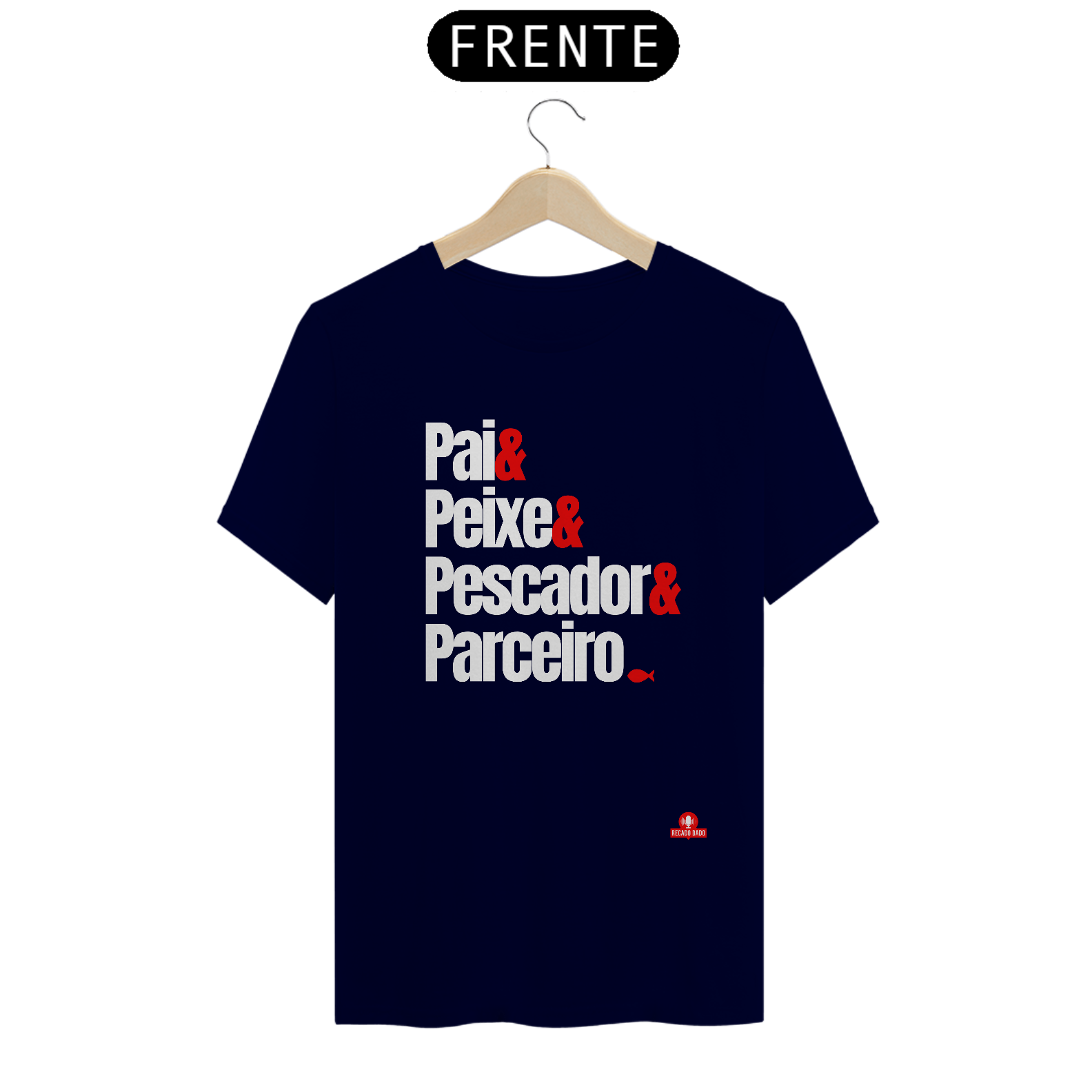 Procurando o presente perfeito para o seu melhor amigo, seu pai, que é um apaixonado pela pesca? Não precisa mais procurar! Apresentamos a camiseta de pescador "Pai, peixe, pescador e parceiro", uma homenagem ao seu herói da pesca favorito. Feita com material de alta qualidade e estampada com uma mensagem emocionante, esta camiseta é o presente ideal para o Dia dos Pais ou para qualquer ocasião especial. Mostre todo o seu amor e admiração pela pessoa que sempre esteve ao seu lado, tornando cada momento de pesca ainda mais especial. Surpreenda seu pai com esta camiseta única e exclusiva Recado Dado.  "Recado Dado: camisetas criativas que falam por você!"