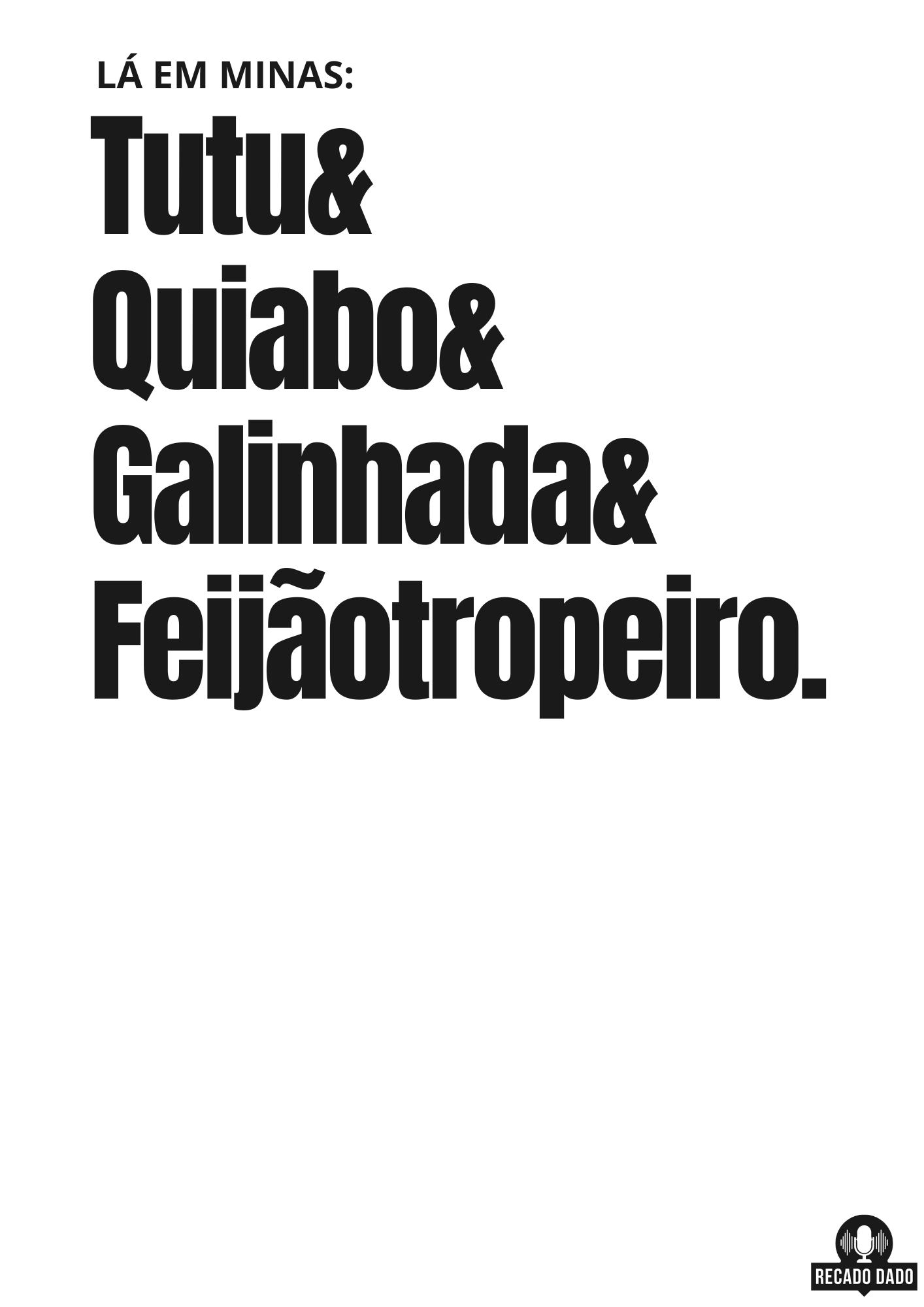 Então, vista a sua camiseta "Lá em Minas: tutu, quiabo, galinhada e feijão tropeiro" e mostre ao mundo o seu amor pela gastronomia de Minas Gerais! Compre agora mesmo na Recado Dado e aproveite essa incrível combinação de estilo e bom gosto em forma de camiseta mineira.