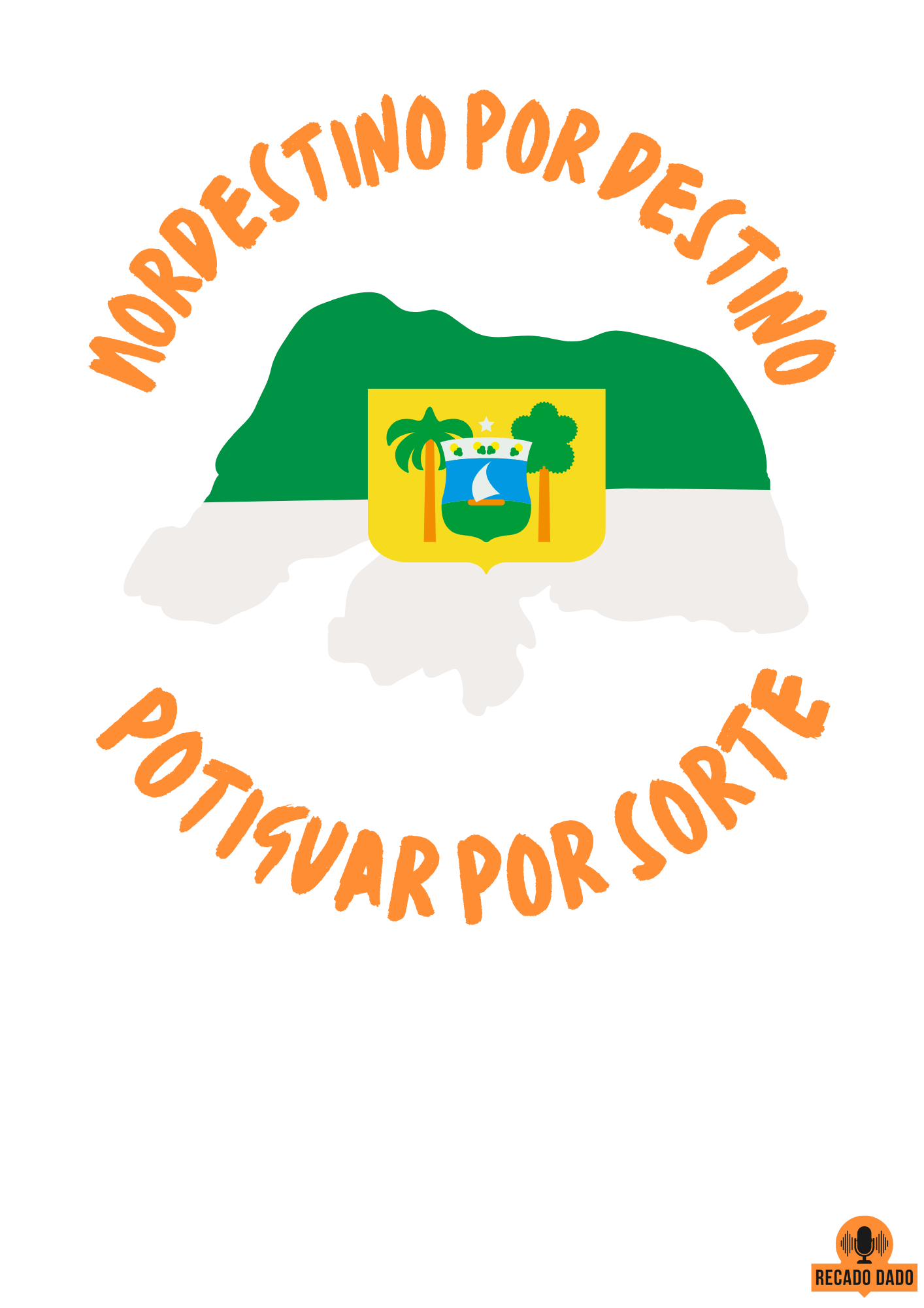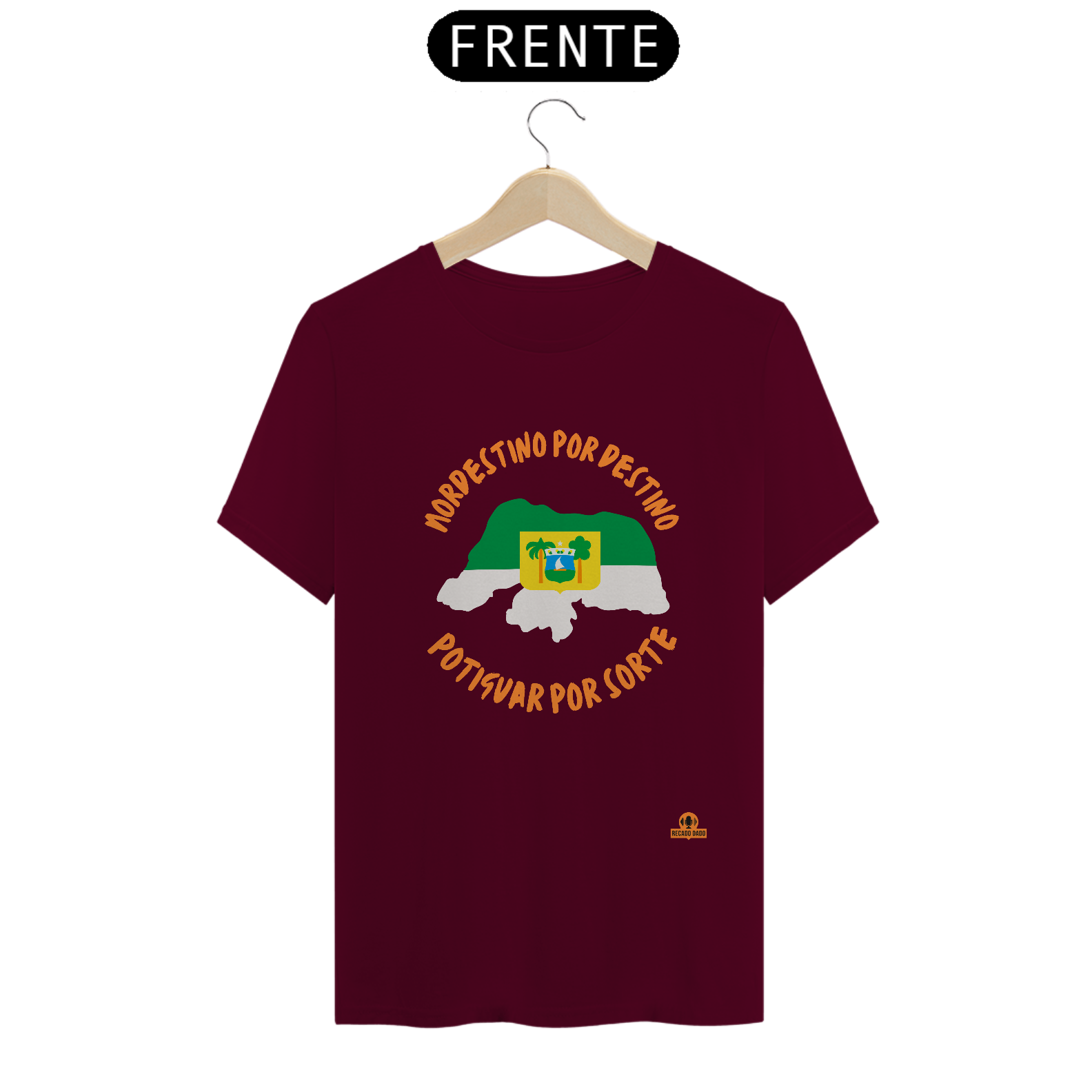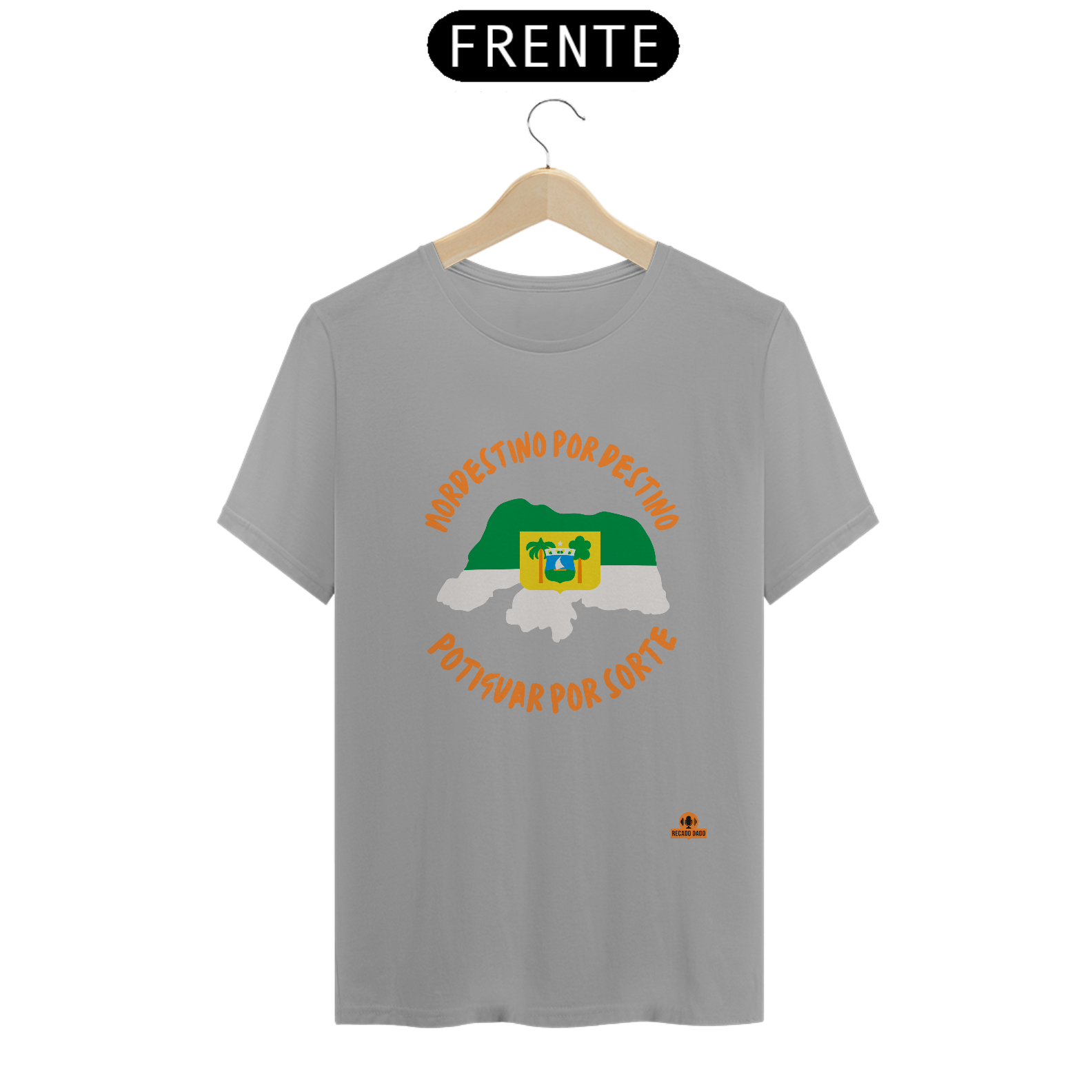 Adquira já a camiseta frase "Nordestino por destino, Potiguar por sorte" com estampa do mapa do Rio Grande do Norte e mostre ao mundo todo o seu amor e orgulho pela região. Vista-se com qualidade, estilo e autenticidade através da Recado Dado!
