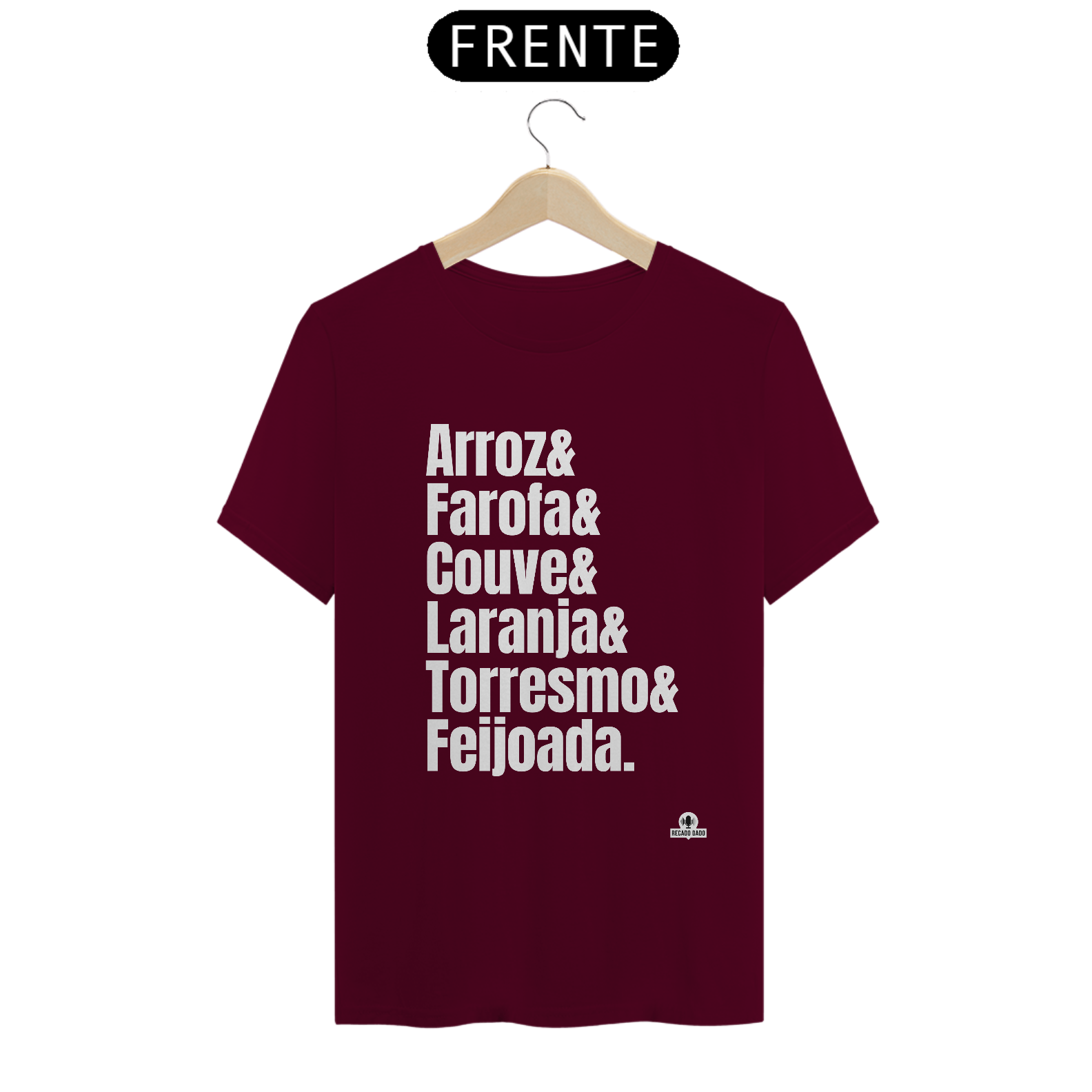 A camiseta 'Acompanhamentos da feijoada' é perfeita para os amantes dessa tradicional iguaria brasileira. Com um design exclusivo e customizado, essa camiseta traz estampados os principais acompanhamentos da feijoada, como a farofa, o couve refogado, a laranja e muito mais.