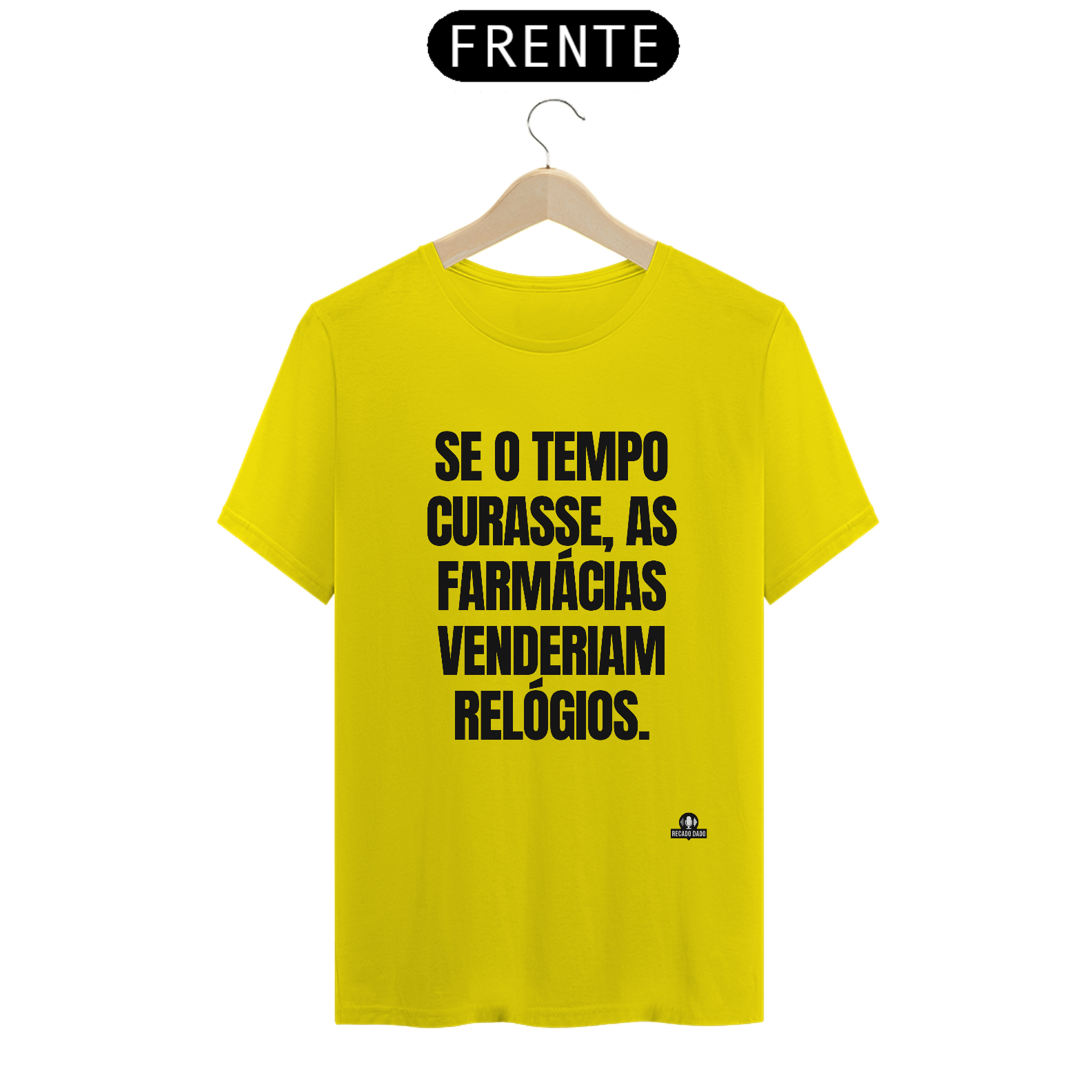 Agora você pode adquirir a camiseta com a frase engraçada "Se o tempo curasse, as farmácias venderiam relógios!" aqui na Recado Dado Camisetas! Nossas camisetas engraçadas com frases únicas são perfeitas para adicionar diversão e personalidade ao seu estilo. Disponível em modelos masculinos e femininos, além de opções para casais, nossa coleção de camisetas engraçadas irá garantir risadas e elogios por onde quer que você vá. Seja para expressar seu senso de humor ou presentear alguém especial, escolher uma camiseta divertida nunca foi tão fácil! Garanta a sua e arranque sorrisos por onde passar!