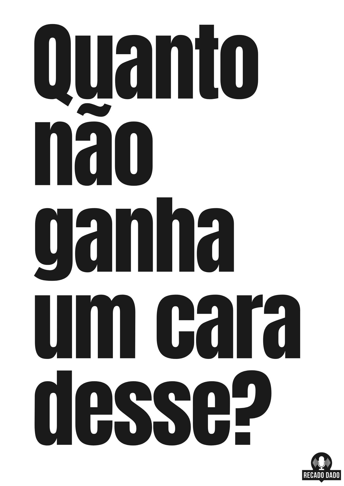 Venha conferir a nossa irresistível camiseta com a frase de humor "Quanto não ganha um cara desse?". Perfeita para quem adora camisetas com frases engraçadas e busca uma forma divertida de expressar o seu bom humor. Esta camiseta é ideal para quem adora rir e alegrar o dia de todos ao redor. Além disso, é uma ótima opção para quem procura camisetas divertidas femininas ou camisetas engraçadas para casal. Não perca a oportunidade de adquirir esta peça única e cheia de personalidade na Recado Dado! "Recado Dado: camisetas criativas que falam por você!"