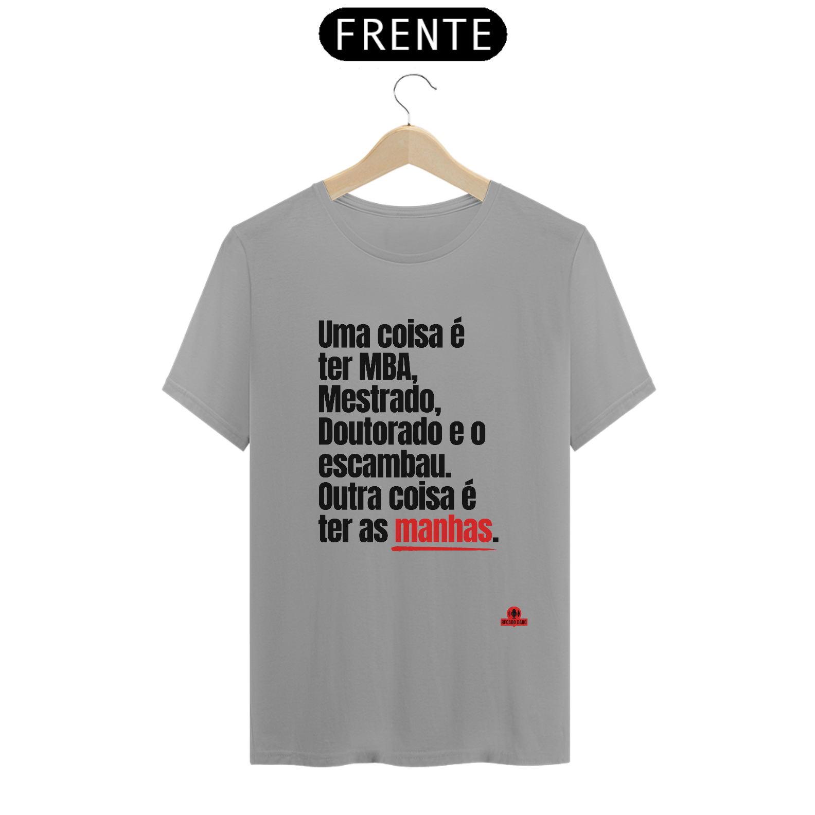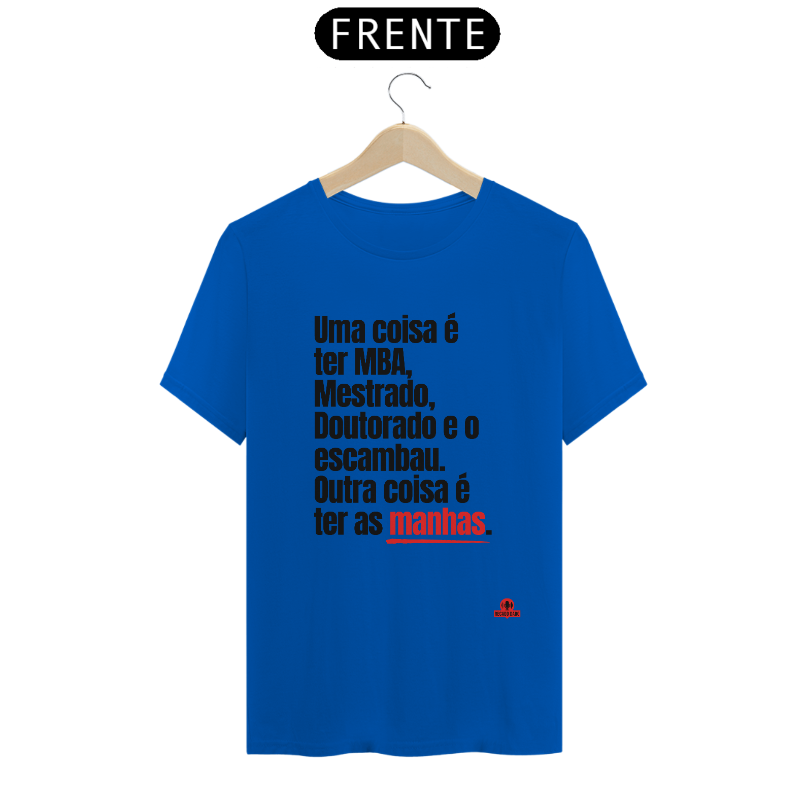 Chega de camisetas sem graça! Se você curte FRASES DE CAMISETAS ENGRAÇADAS e quer arrancar risadas por onde passa, essa camiseta com a frase "Uma coisa é ter MBA, mestrado, doutorado e o escambau. Outra coisa é ter as manhas" é a escolha perfeita para você! Se você é fã de FRASES PARA CAMISETAS ENGRAÇADAS e adora peças de roupa que fazem sucesso por onde passam, essa camiseta é para você. Além de divertida, ela é perfeita para quem busca CMAISETAS COMITIVAS e chamativas. Garanta já a sua e se destaque com muito estilo e bom humor! Essa camiseta faz parte da nossa coleção de CAMISETAS FRASES POLITICAMENTE INCORRETAS, não perca essa oportunidade de ter uma peça exclusiva e divertida no seu guarda-roupa!   "Recado Dado: camisetas criativas que falam por você!"