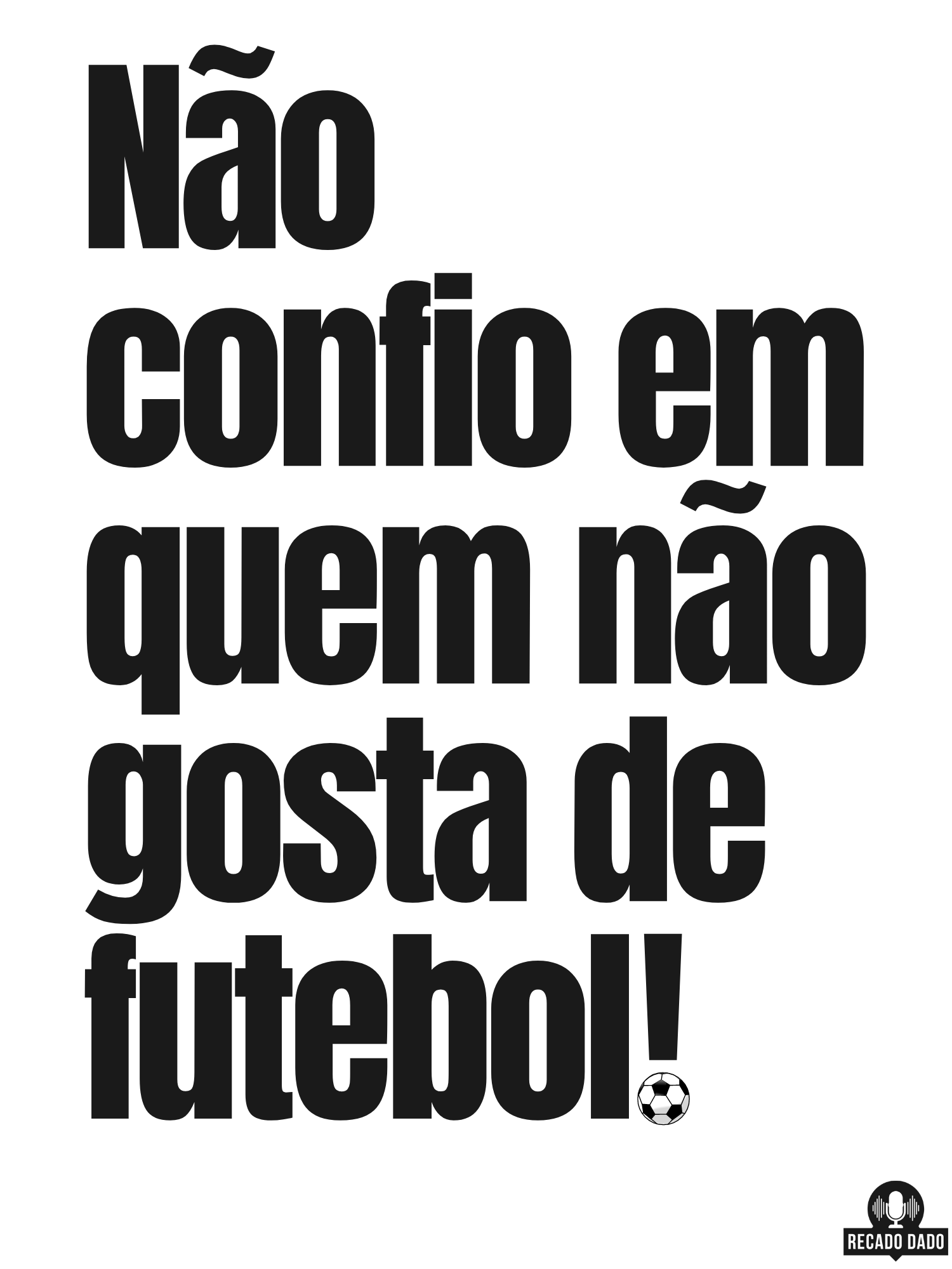 Se você é daqueles que vive e respira futebol, essa camiseta é um item indispensável no seu guarda-roupa. Mostre para o mundo o seu amor pelo esporte e deixe claro que não confia em quem não gosta de futebol. Adquira já a sua camiseta com a frase "NÃO CONFIO EM QUEM NÃO GOSTA DE FUTEBOL" e faça parte desse time de apaixonados pelo esporte mais emocionante do mundo!