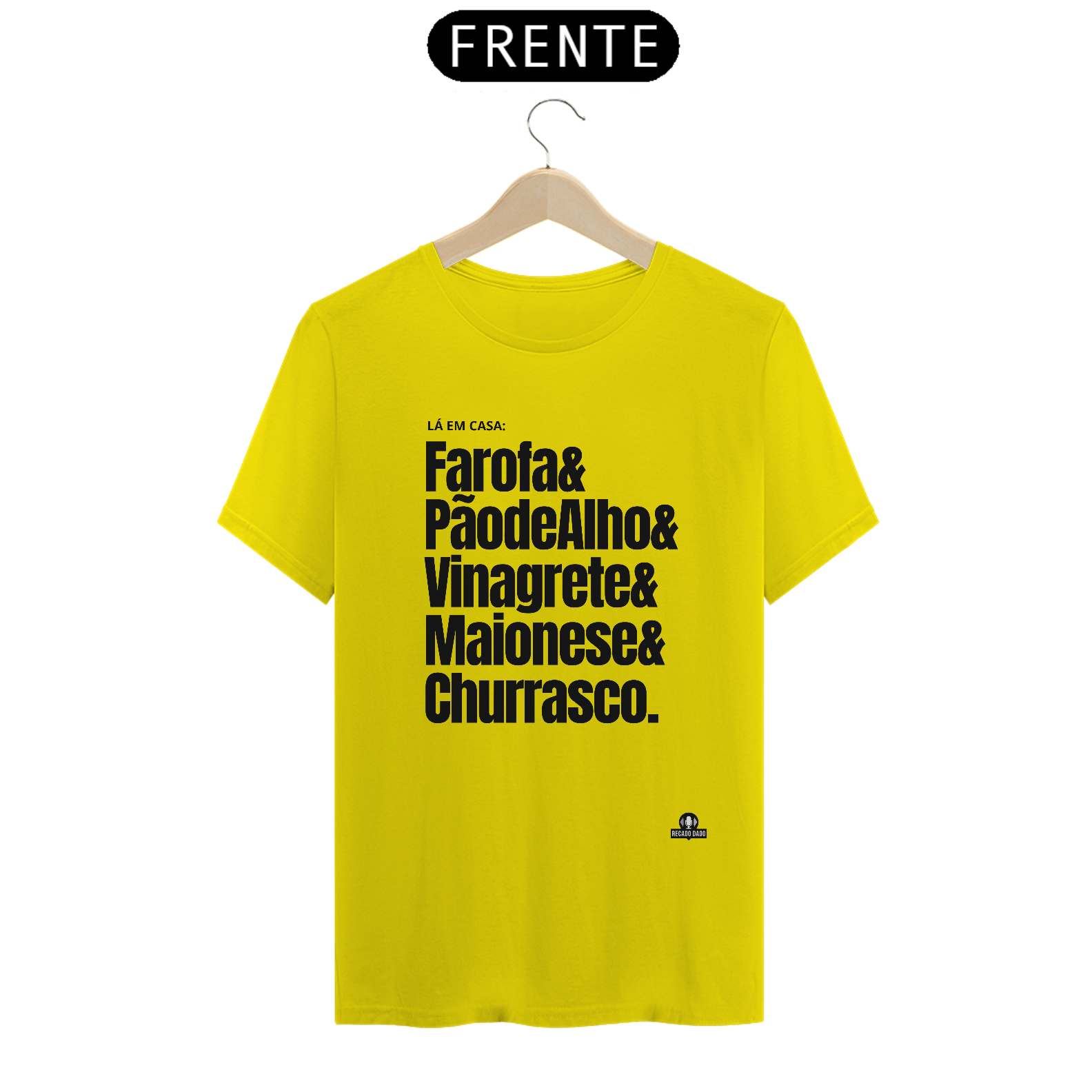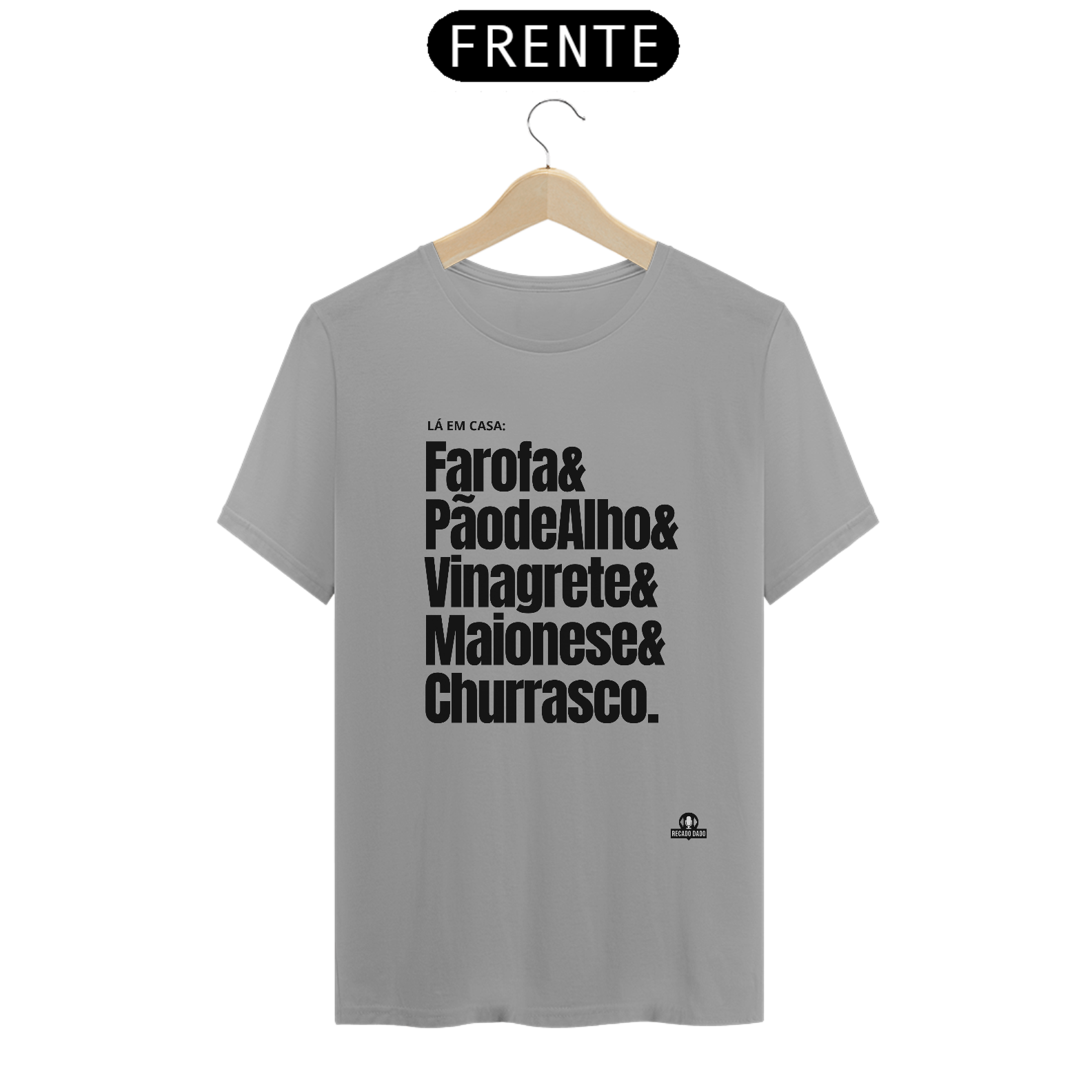Você é um verdadeiro mestre churrasqueiro? Apresentamos a camiseta perfeita para você exibir sua paixão pelo churrasco com estilo e bom humor! Com a frase divertida "Lá em casa: farofa, pão de alho, vinagrete, maionese e churrasco", esta camiseta é a escolha ideal para os amantes de churrasco. Seja você o mestre das brasas ou simplesmente adora participar de um bom churrasco entre amigos, esta camiseta vai te deixar no clima certo para curtir esses momentos especiais. Confeccionada em tecido de alta qualidade, ela oferece conforto e durabilidade para acompanhar você em todas as suas aventuras gastronômicas. Seja o centro das atenções nos churrascos, comemorações e encontros familiares usando essa camiseta exclusiva e divertida. Compre agora mesmo a sua camiseta churrasco e mostre a todos que você é o verdadeiro churrasqueiro da turma!