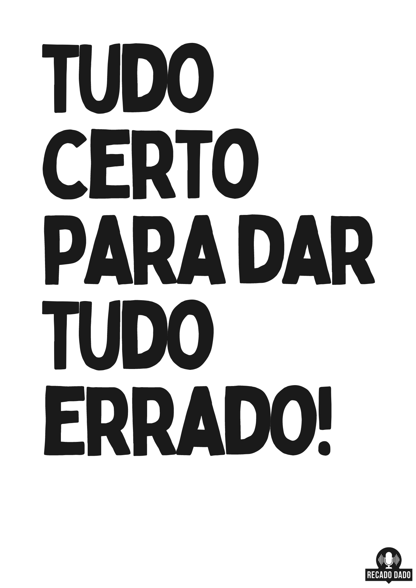 Se você busca um toque de humor e irreverência no seu visual, a camiseta com a frase engraçada "Tudo certo para dar tudo errado" é a escolha perfeita! Feita com material de alta qualidade, esta camiseta garante conforto e estilo ao mesmo tempo. Ideal para quem gosta de camisetas engraçadas, sátiras e frases divertidas. Perfeita para casais que adoram compartilhar momentos descontraídos juntos. Adquira já a sua e adicione um toque de diversão ao seu guarda-roupa!  "Recado Dado: camisetas criativas que falam por você!" .