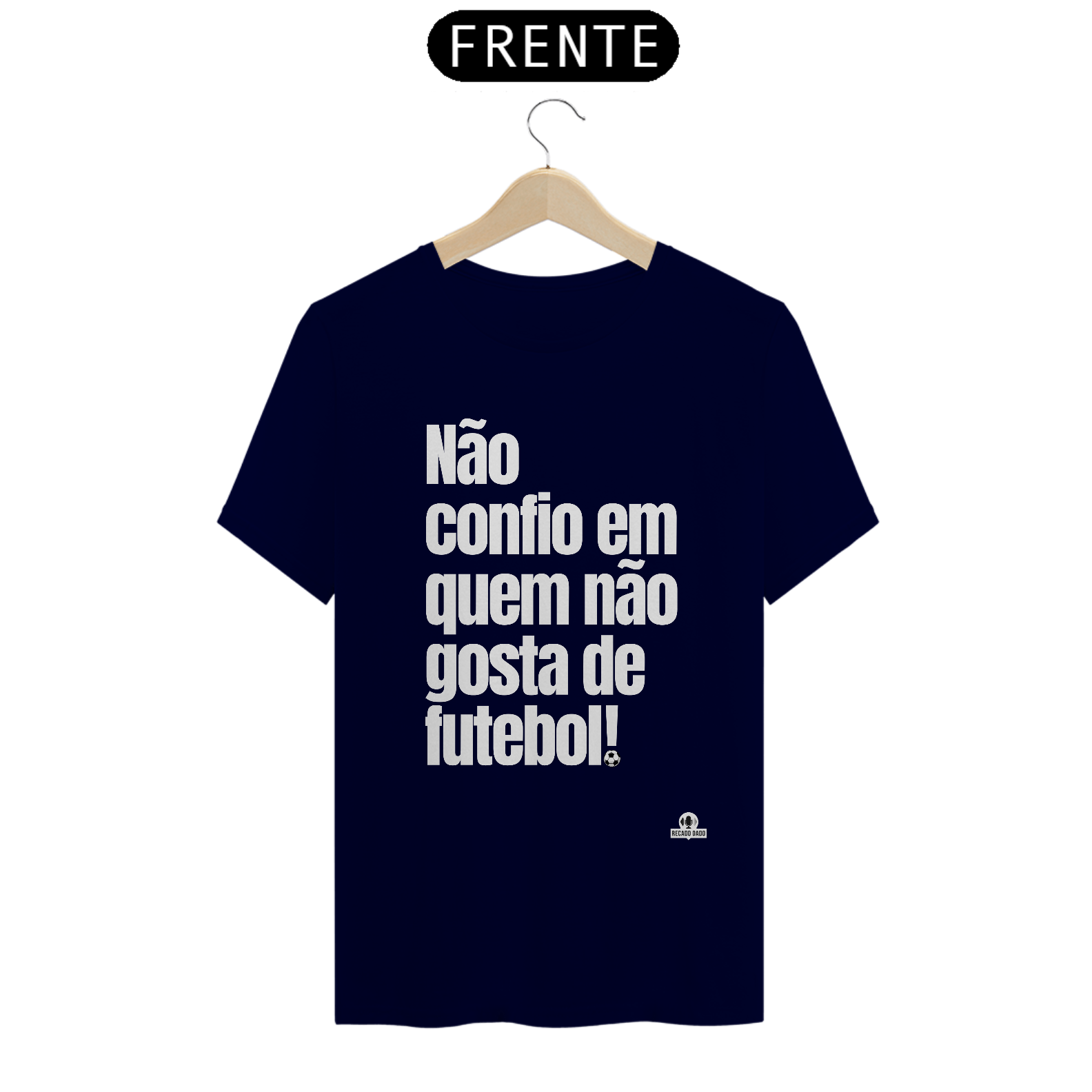 Se você é daqueles que vive e respira futebol, essa camiseta é um item indispensável no seu guarda-roupa. Mostre para o mundo o seu amor pelo esporte e deixe claro que não confia em quem não gosta de futebol. Adquira já a sua camiseta com a frase "NÃO CONFIO EM QUEM NÃO GOSTA DE FUTEBOL" e faça parte desse time de apaixonados pelo esporte mais emocionante do mundo!