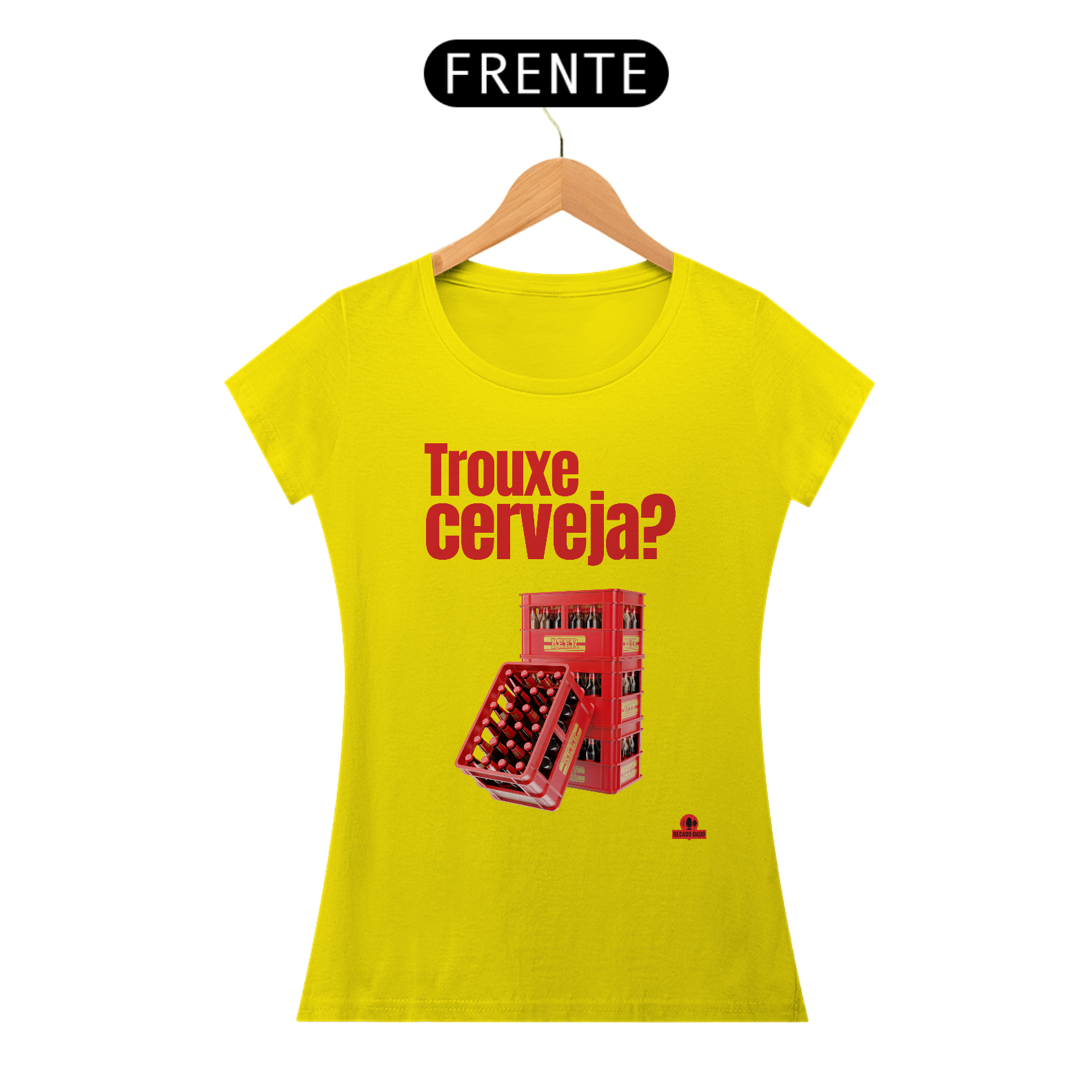Chegou a camiseta perfeita para os amantes de cerveja! Com a divertida frase "trouxe cerveja" e estampa de engradado de cerveja, esta camiseta vai garantir muitas risadas nos encontros no bar ou no boteco. Feita com material de alta qualidade, é confortável e durável, ideal para quem quer curtir os melhores momentos com muito estilo. Adquira já a sua camiseta de bar com estampa de cerveja e arrase nas rodas de amigos. Aproveite também para conferir nossa coleção de camisetas engraçadas de cerveja e escolha a sua favorita!  "Recado Dado: camisetas criativas que falam por você!".