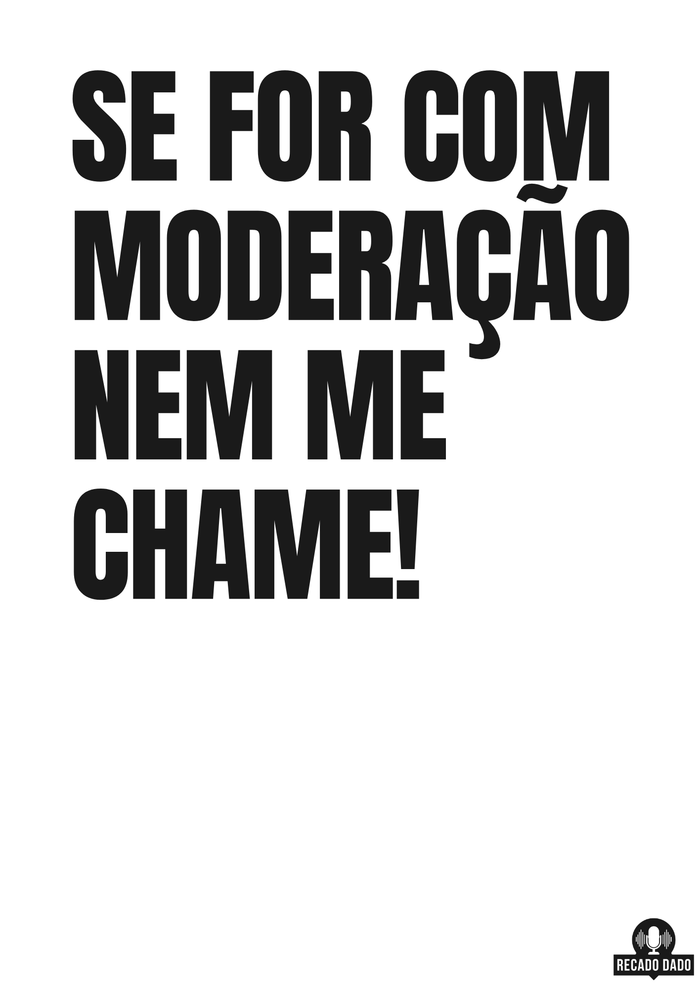 Você já se cansou de ser chamado para programas chatos e eventos monótonos? Quer deixar claro para todos que você só está interessado em se divertir de verdade? Apresentamos a camiseta perfeita para você: "SE FOR COM MODERAÇÃO NEM ME CHAME".