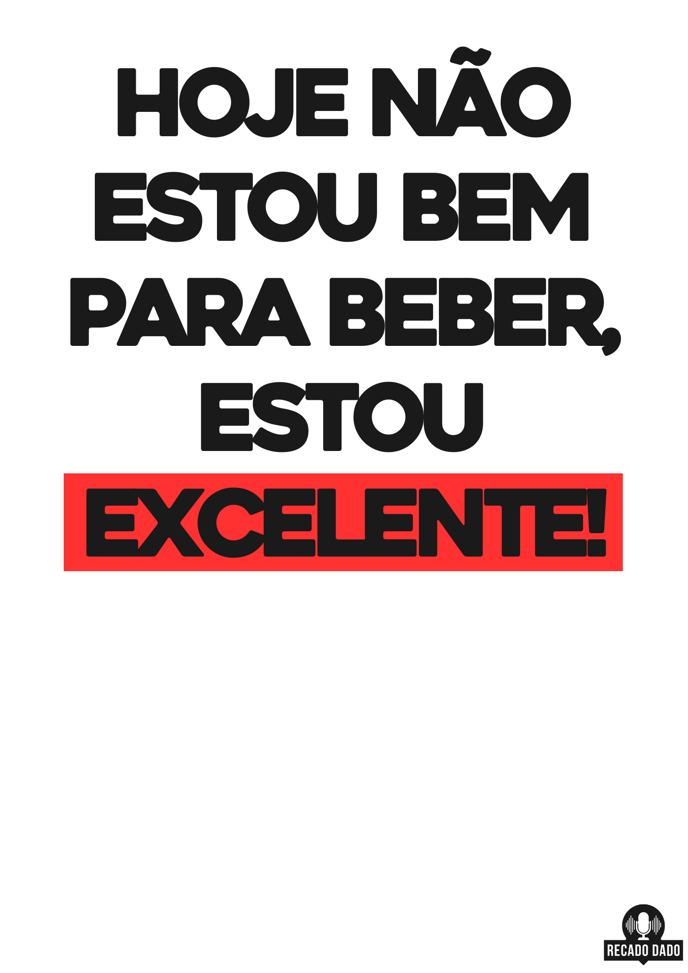 Então, se você está procurando uma camiseta divertida e cheia de estilo, não procure mais! Adquira agora mesmo nossa camiseta "HOJE NÃO ESTOU BOM PRA BEBER, ESTOU EXCELENTE" e mostre ao mundo que você está sempre no seu melhor estado de espírito, mesmo sem uma bebida na mão.