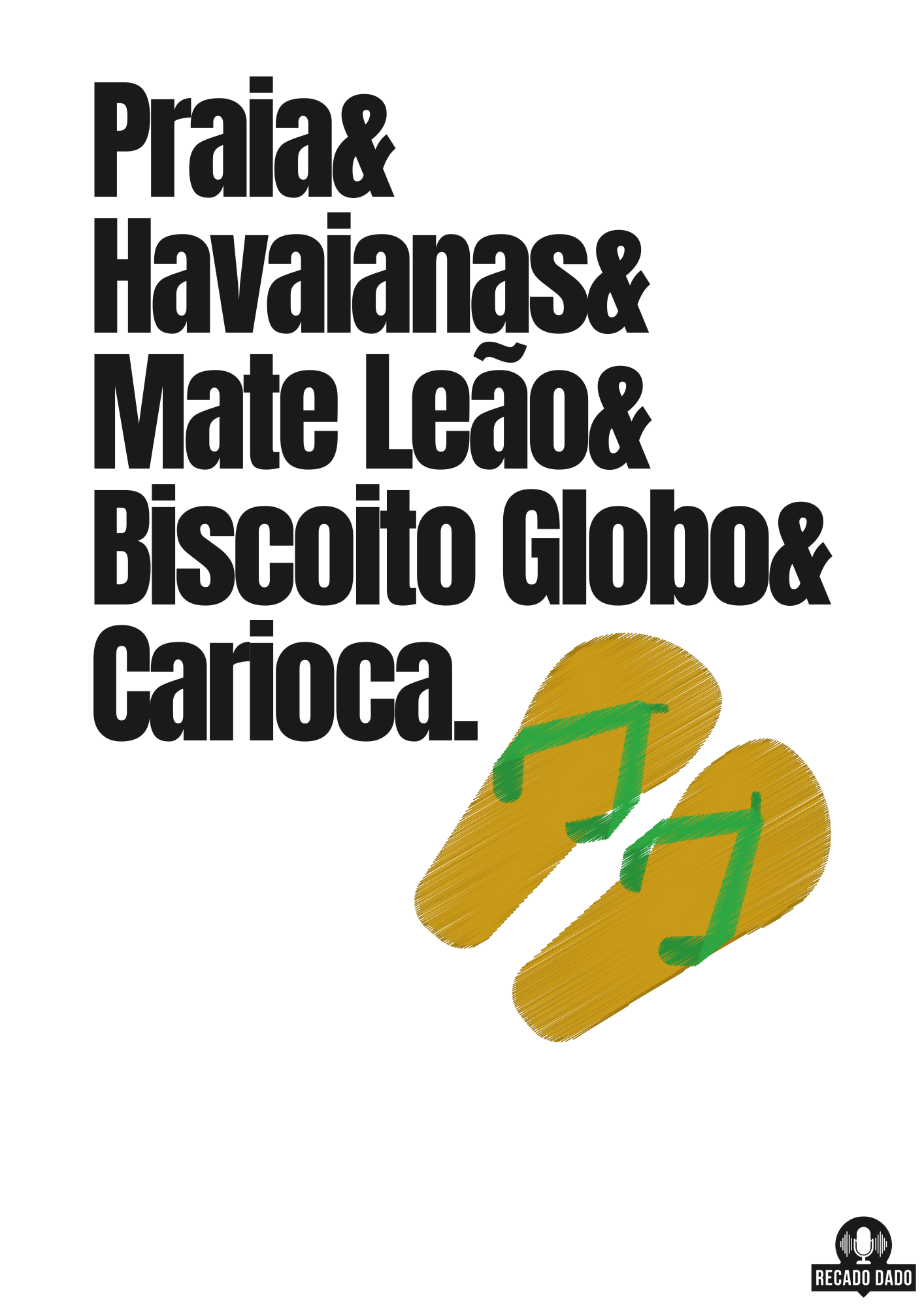 A arte da camiseta apresenta ícones emblemáticos da cidade, como a praia, as havaianas, o mate leão, o biscoito globo, que todo carioca ama e se identifica. A combinação desses elementos cria uma vibe descontraída e autêntica, refletindo o estilo de vida único do Rio de Janeiro.