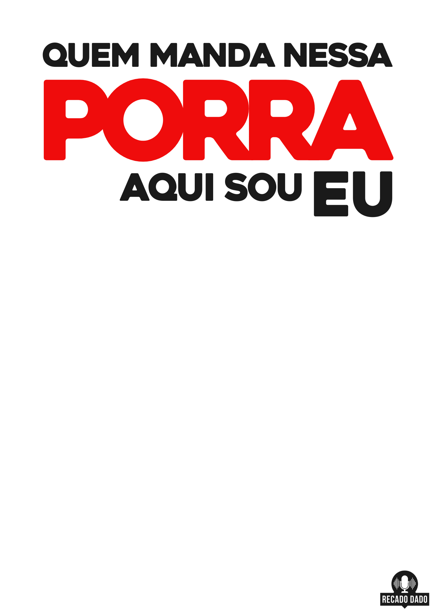 A camiseta frase humor "Quem manda nessa porra aqui sou eu!" é perfeita para aqueles que adoram um bom humor irreverente e politicamente incorreto. Feita com o mais alto padrão de qualidade, essa camiseta engraçada vai garantir risadas e atrair olhares por onde você passar. Com uma frase impactante estampada, você certamente vai se destacar entre a multidão. Se você é fã de camisetas com frases engraçadas e procura algo fora do convencional, esta camiseta é o produto ideal para você. Aproveite agora mesmo e adquira essa peça única da Recado Dado, que oferece uma ampla variedade de camisetas humorísticas, camisetas com frases politicamente incorretas e outros modelos incríveis de camisetas.