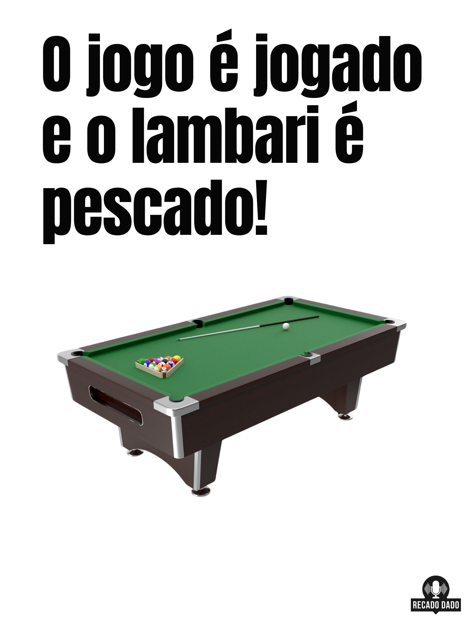 Esta camiseta de jogador de sinuca com a divertida frase "O jogo é jogado e o lambari é pescado" é perfeita para os amantes do esporte e da descontração. Feita em material de alta qualidade, esta camiseta é ideal para os apaixonados por sinuca que buscam um toque de humor em seu visual. Seja para usar em um bar, boteco ou até mesmo para uma descontraída partida de sinuca com os amigos, essa camiseta com frase única e engraçada é garantia de muito estilo e diversão. Aproveite e garanta já a sua! "Recado Dado: camisetas criativas que falam por você!"