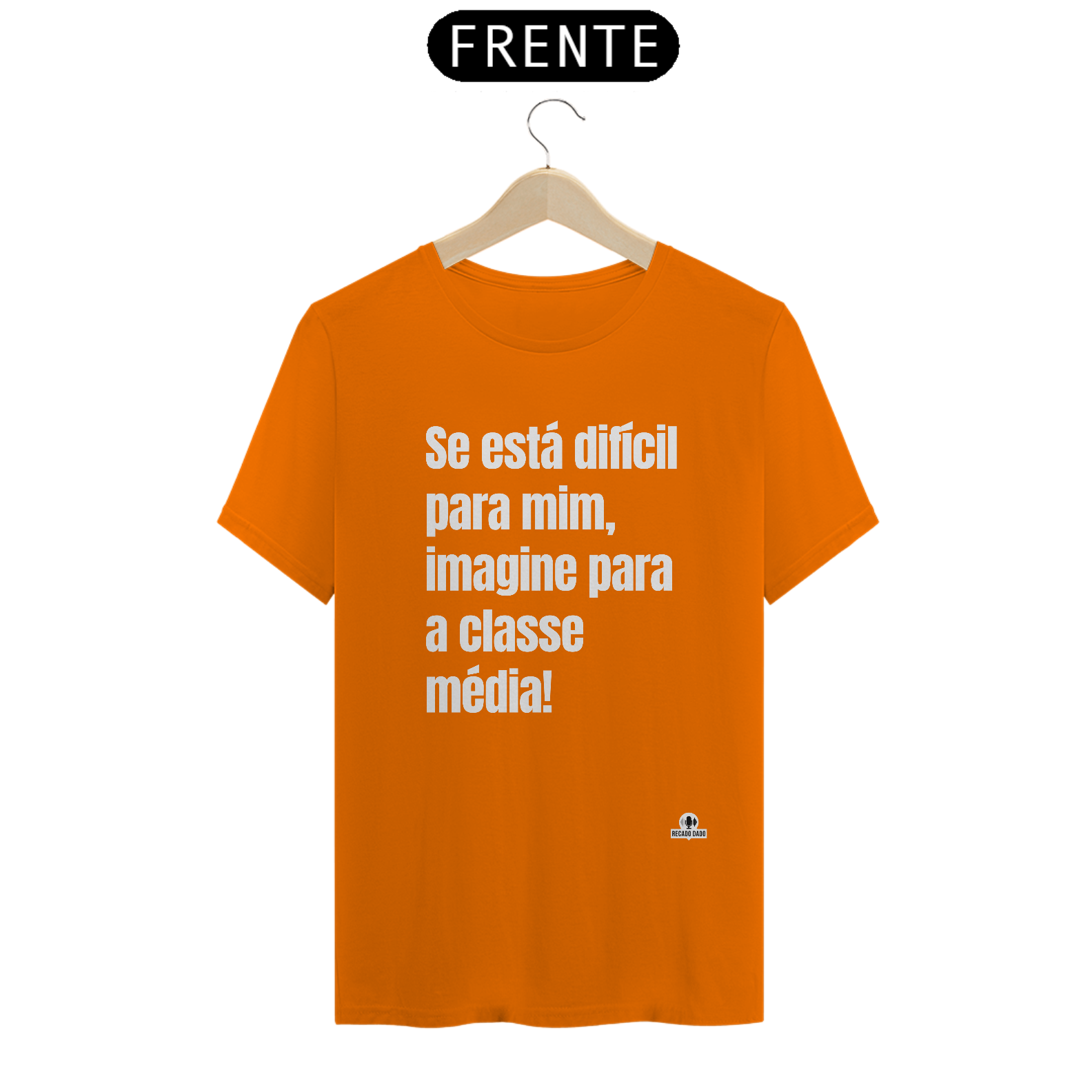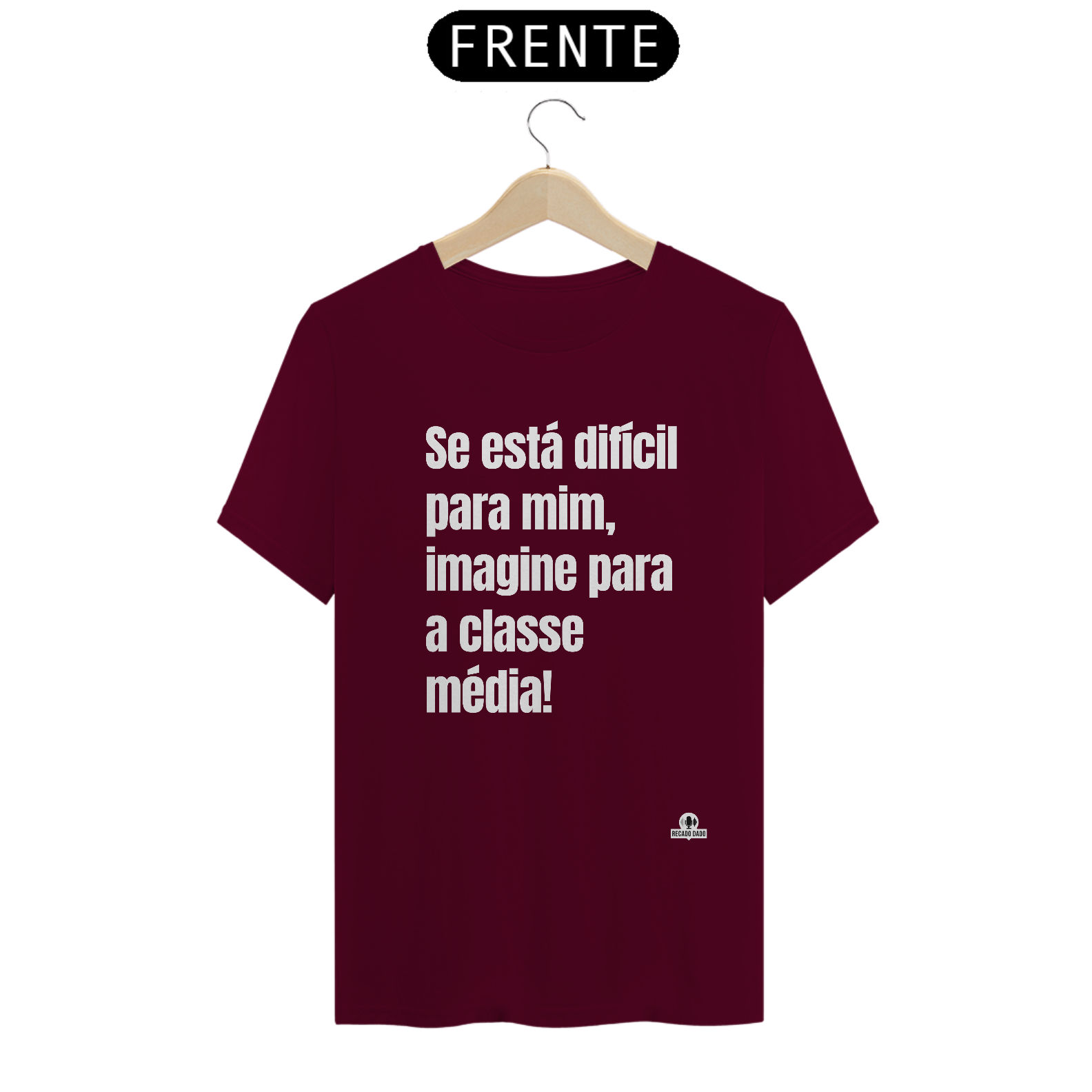 Sinta-se confiante e cheio de estilo com a nossa camiseta de humor negro "Se está difícil pra mim, imagine pra classe média!". Adquira a sua hoje mesmo na Recado Dado e mostre seu lado divertido e irreverente para o mundo!