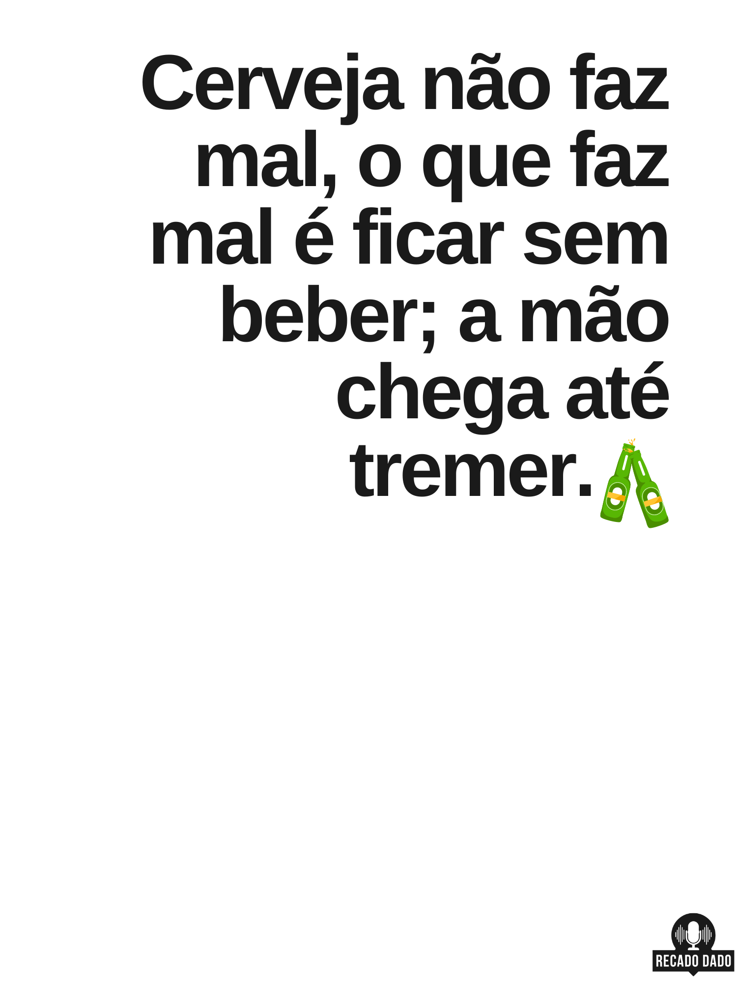 Você já se deparou com uma frase tão divertida e verdadeira que precisou compartilhá-la com o mundo? Apresentamos a camiseta perfeita para os amantes de cerveja: "CERVEJA NÃO FAZ MAL. O QUE FAZ MAL É FICAR SEM BEBER. A MÃO CHEGA A TREMER".