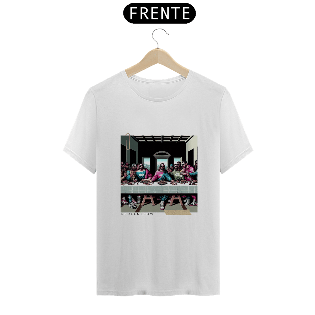 Esta camiseta única combina a beleza intemporal da Última Ceia com um estilo contemporâneo e urbano, criando uma peça de vestuário que não apenas expressa sua devoção, mas também reflete sua personalidade e gosto pelo design moderno.