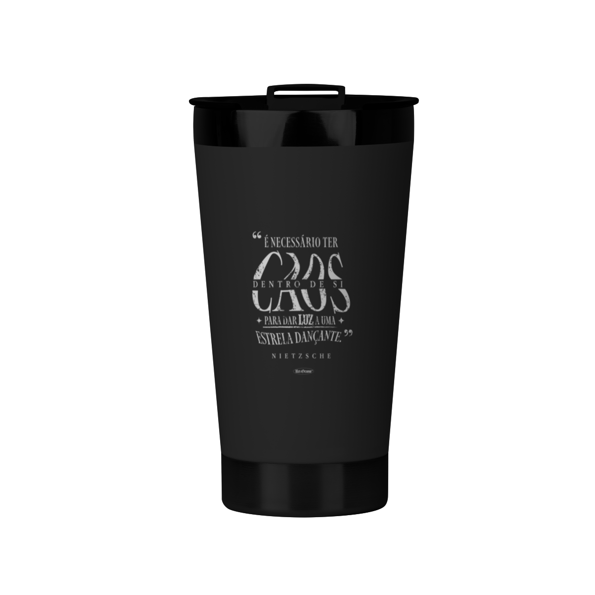 O Copo Térmico Nietzsche de 473ml é o instrumento existencial essencial para o ócio produtivo e a autodescoberta. Estampado com o aforismo "É necessário ter caos dentro de si para dar à luz uma estrela dançante", este copo térmico filosófico serve como um lembrete diário de que a criatividade e a superação nascem da turbulência interna, ideal para quem estuda existencialismo ou busca frases de pensadores. Confeccionado em Aço Inoxidável e decorado com a técnica DTF UV (Direct to Film), ele (16,5cm altura) mantém a temperatura da sua bebida por mais tempo, servindo tanto para líquidos quentes quanto frios, unindo a funcionalidade com o manifesto intelectual do Rei Ocioso.