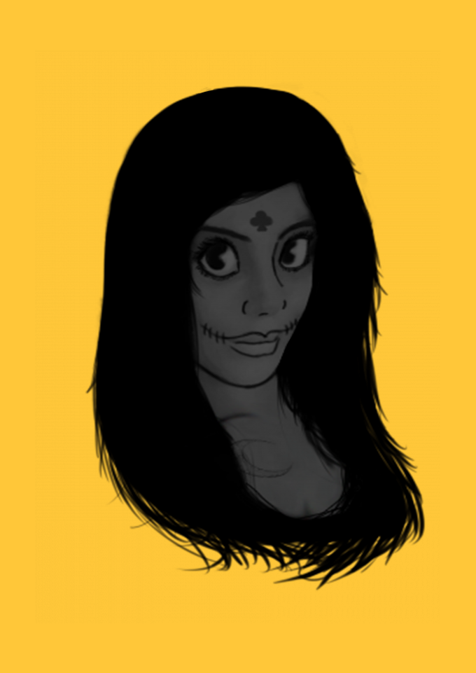 Um retrato da Catrina moderna, essa mulher representa que diante da morte todos somos iguais, Carpe Diem.
