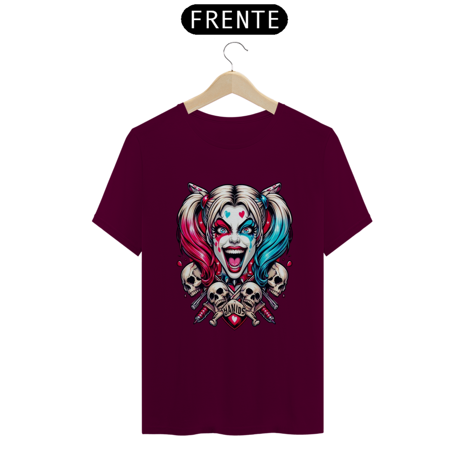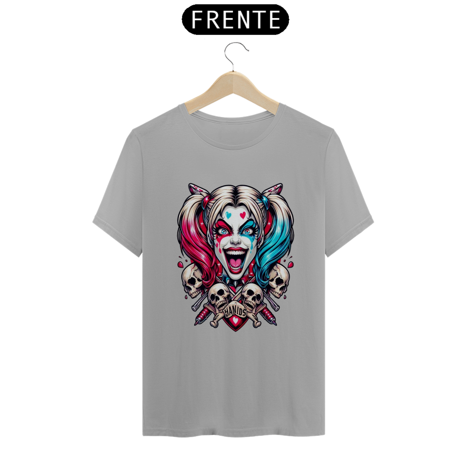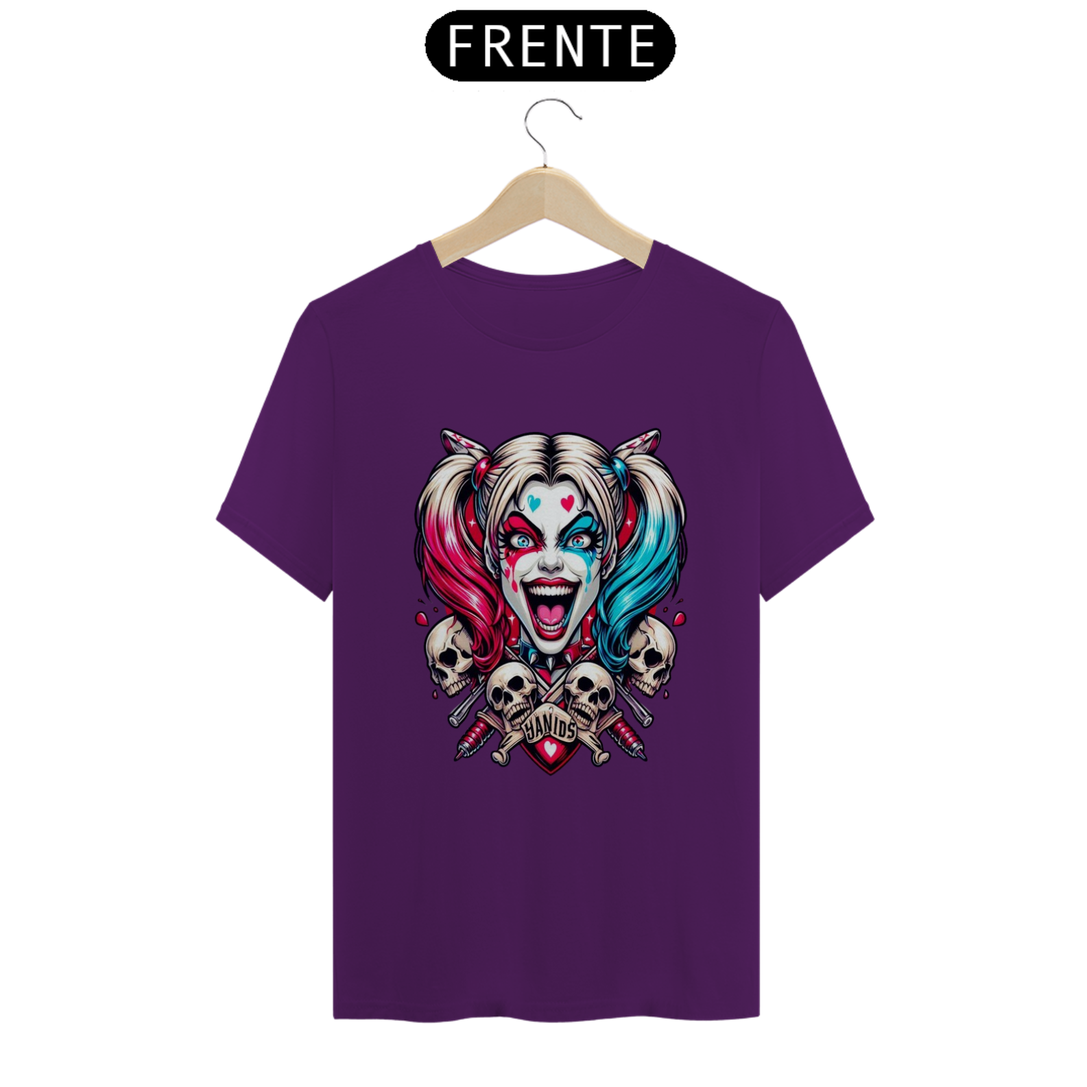 Uma camisa com o tema da Arlequina (Harley Quinn) pode ser uma peça vibrante e cheia de personalidade, perfeita para fãs de quadrinhos, filmes e cultura pop.