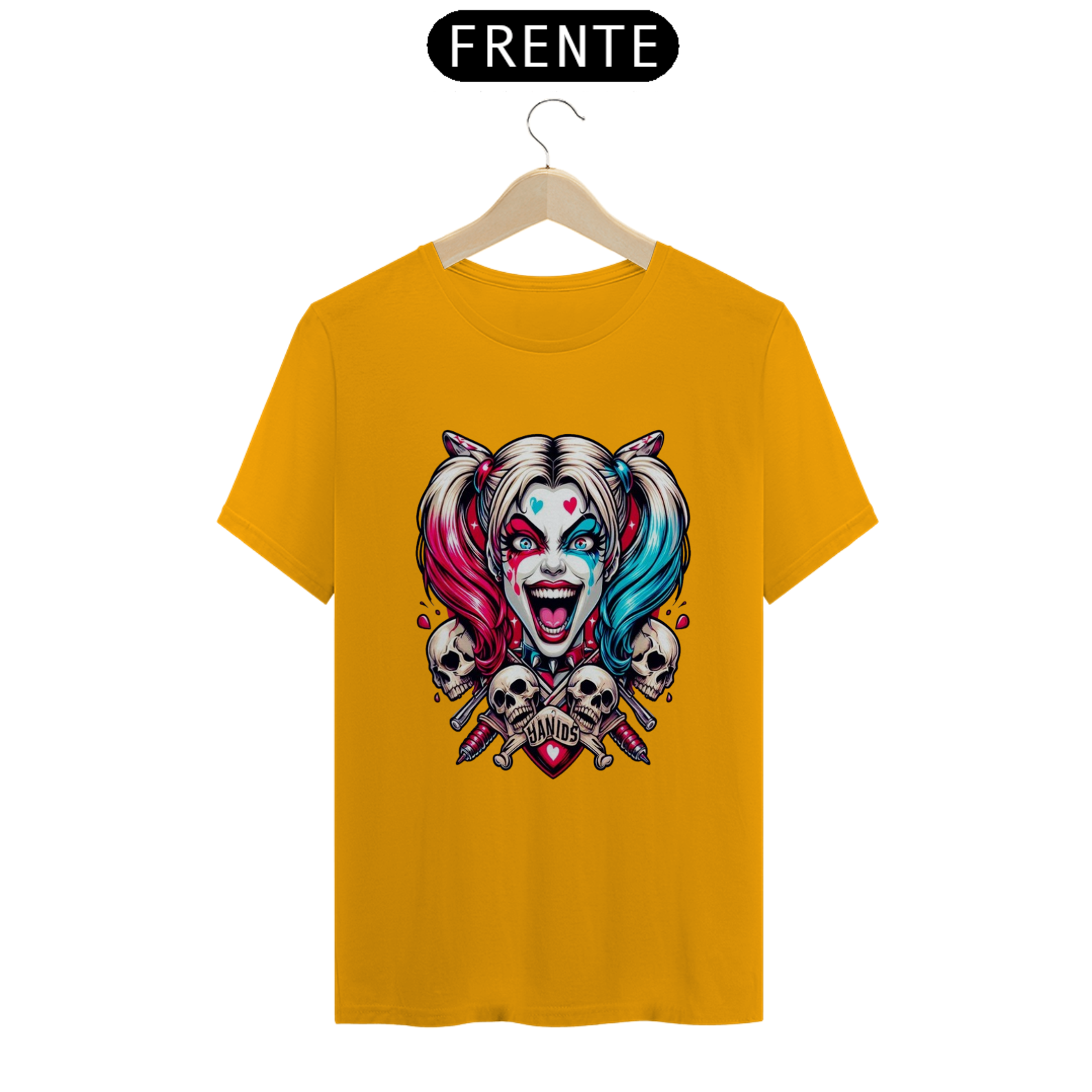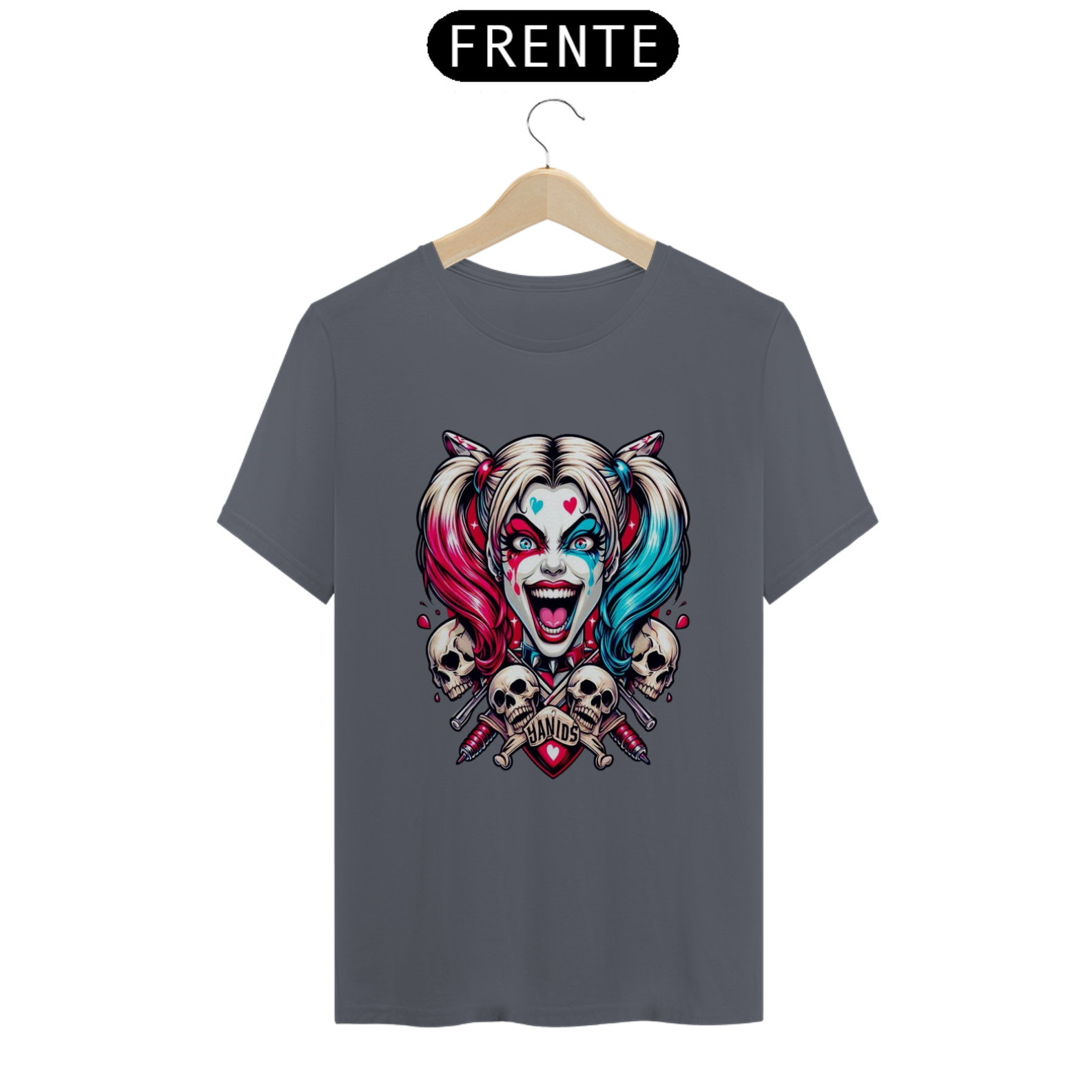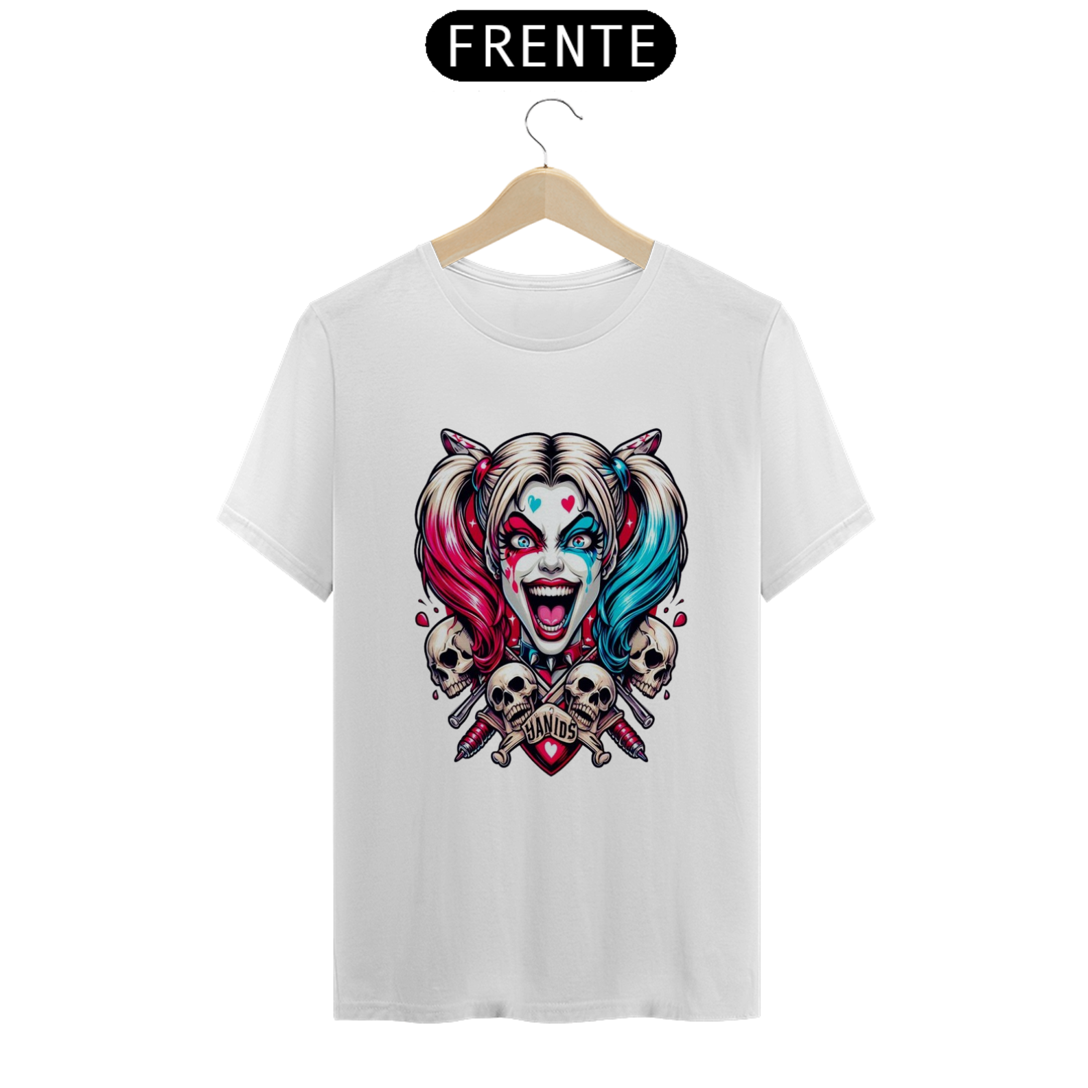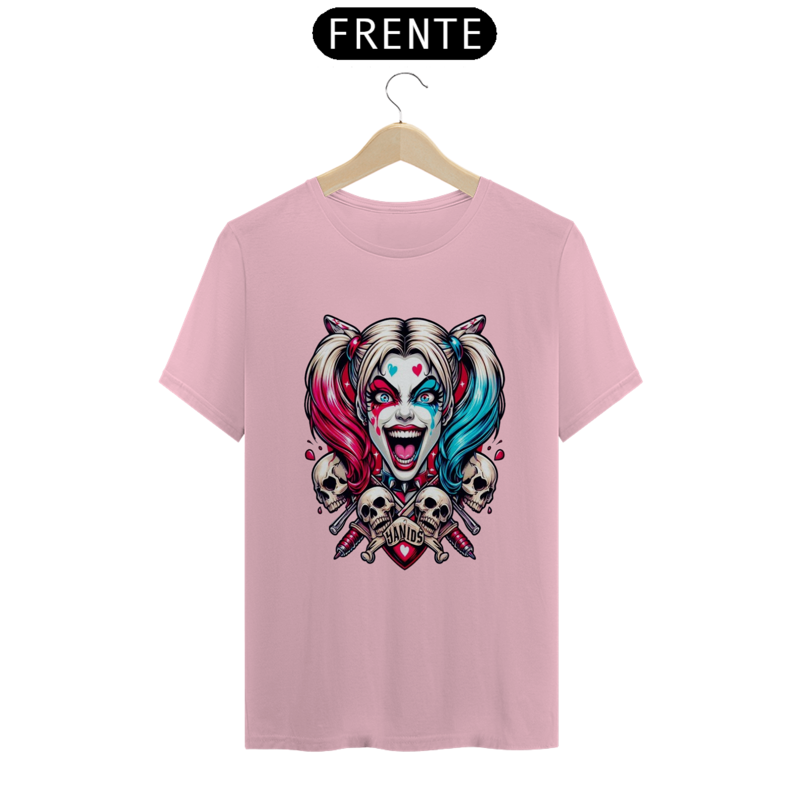 Uma camisa com o tema da Arlequina (Harley Quinn) pode ser uma peça vibrante e cheia de personalidade, perfeita para fãs de quadrinhos, filmes e cultura pop.