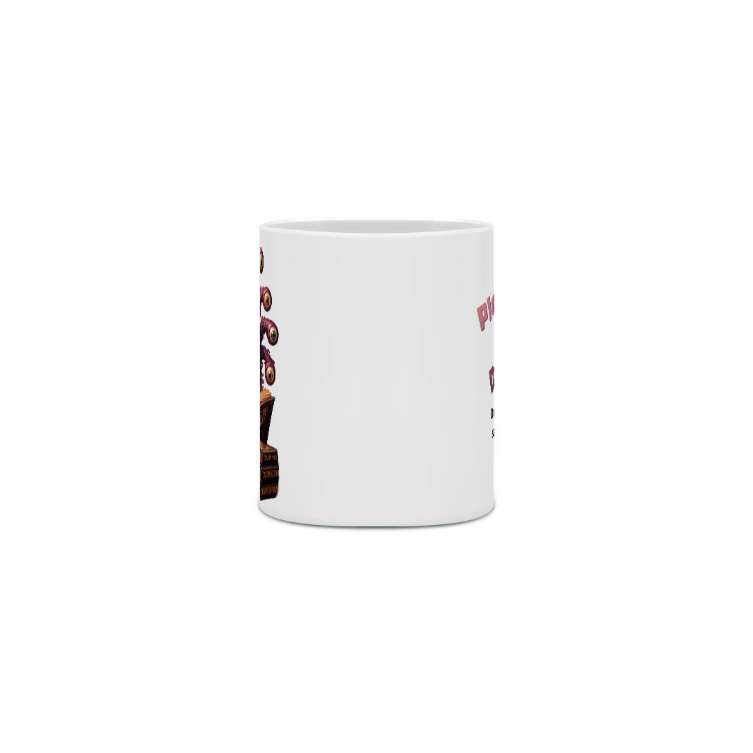 Nesta caneca habita um beholder leitor, suspenso entre páginas e segredos arcanos. Com todos os olhos fixos no livro, ele absorve conhecimento proibido, runas antigas e verdades que poucos ousam encarar. Cada gole acompanha a vigília silenciosa do tirano ocular, que não lê por prazer, mas por poder. Mais que uma caneca, é um artefato para mestres, magos e aventureiros que sabem: conhecimento é a magia mais perigosa de todas.