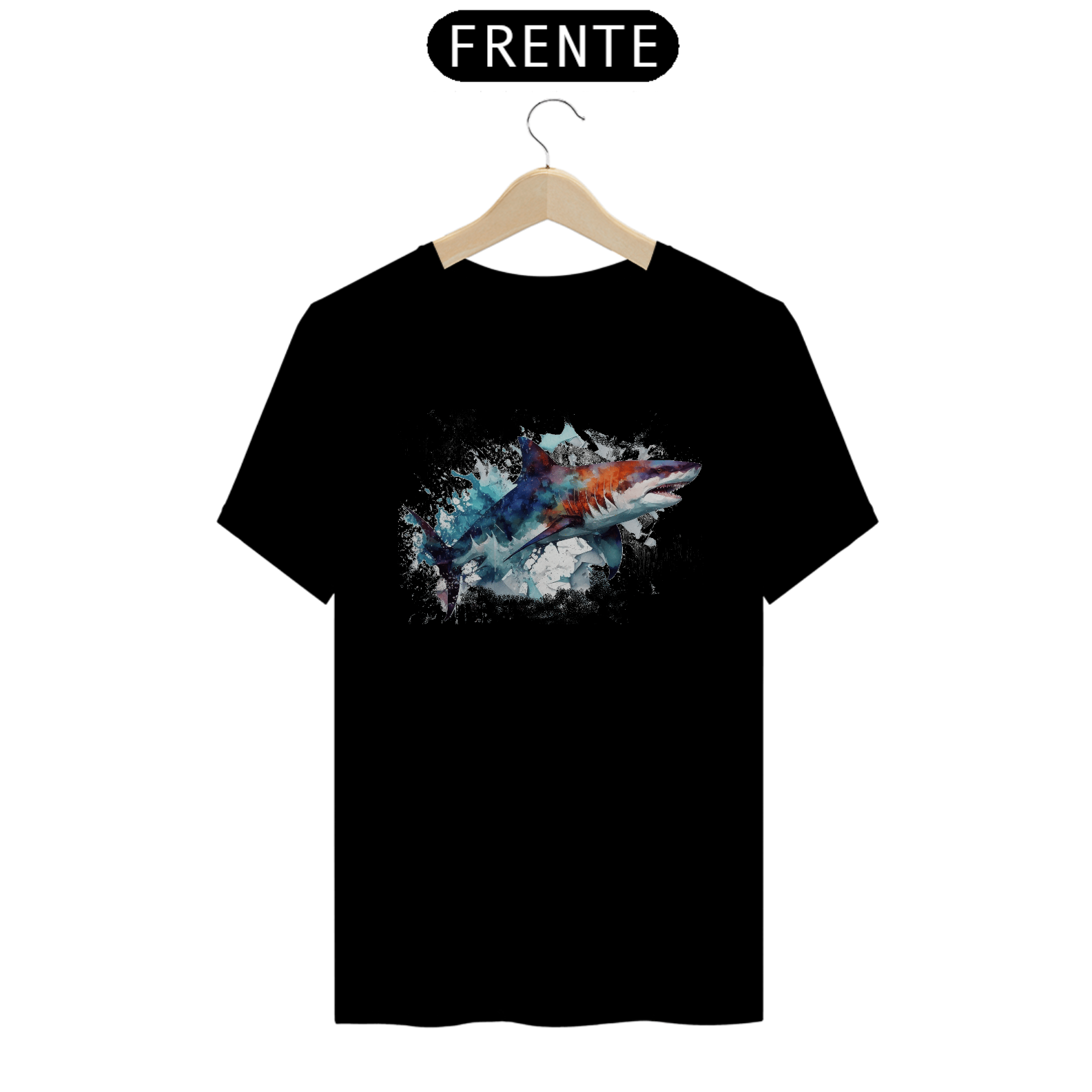O tubarão surge como a personificação do instinto primitivo, da força implacável e do movimento constante. Cada traço carrega a ideia de avanço contínuo e poder natural — uma peça que veste quem segue em frente sem hesitar, guiado pela própria natureza.