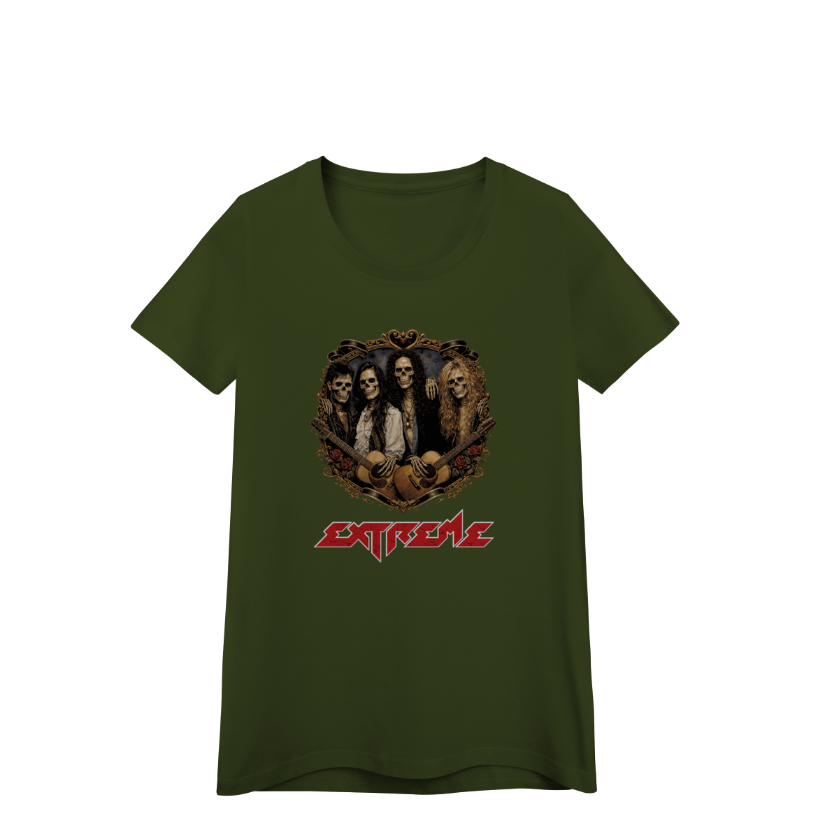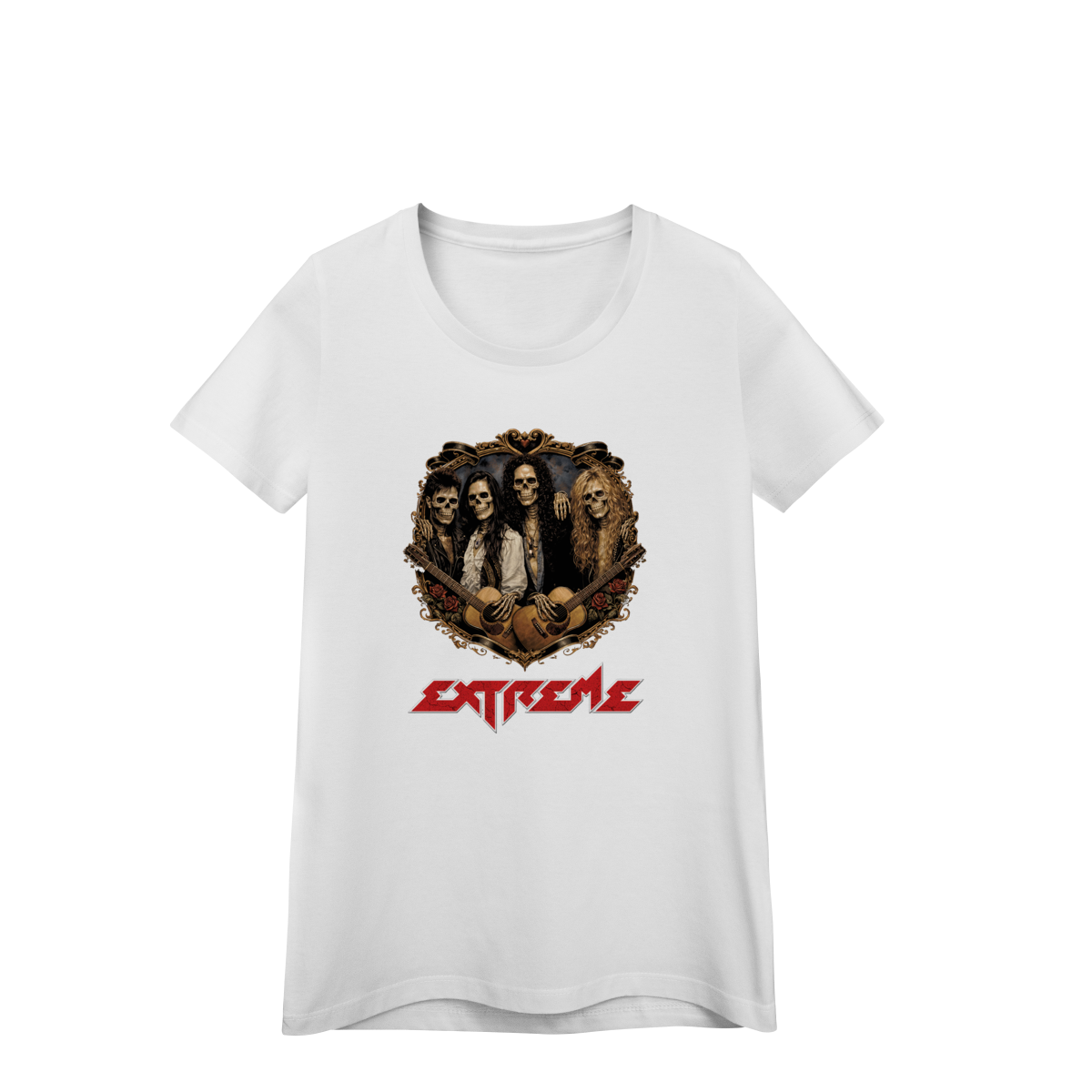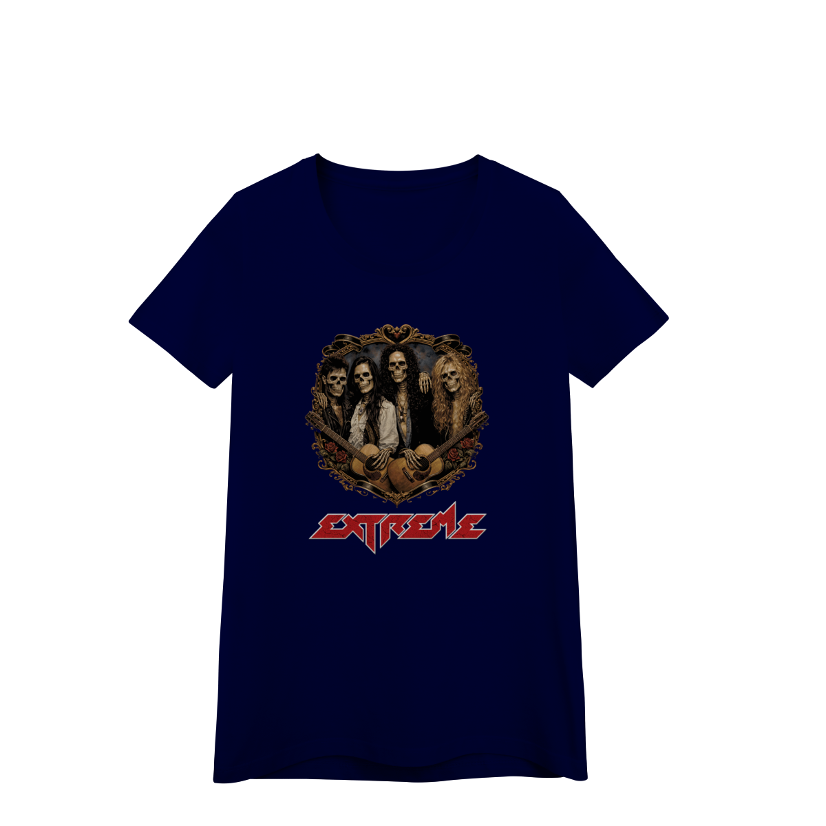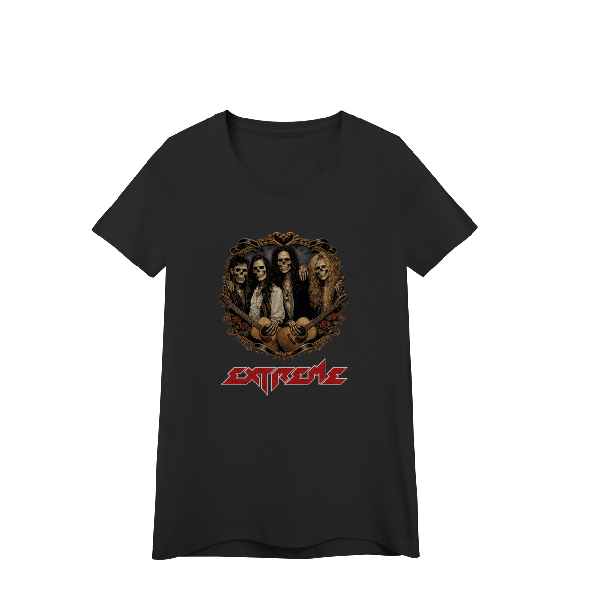 Uma releitura poderosa de uma das bandas mais marcantes do hard rock dos anos 90. A estampa Extreme Hard Skull apresenta a banda Extreme transformada em caveiras estilosas, reunidas dentro de um brasão trabalhado, com roupas, acessórios e símbolos que remetem diretamente ao auge da banda e à estética da década.