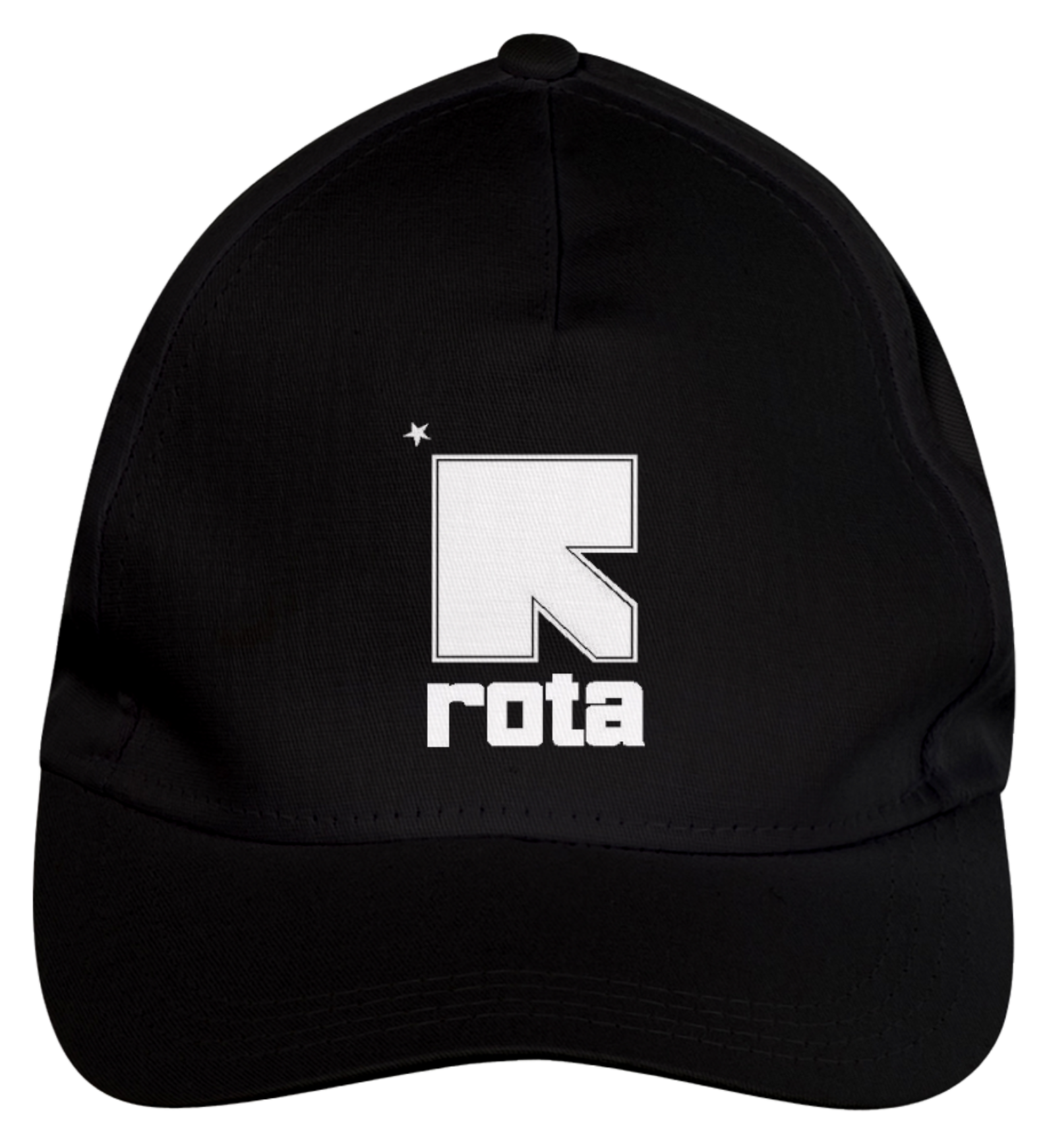 Boné americano com transfer frontal em alta qualidade, aba curva e fecho em tira totalmente regulável com pinos. O modelo veste tamanho "único".