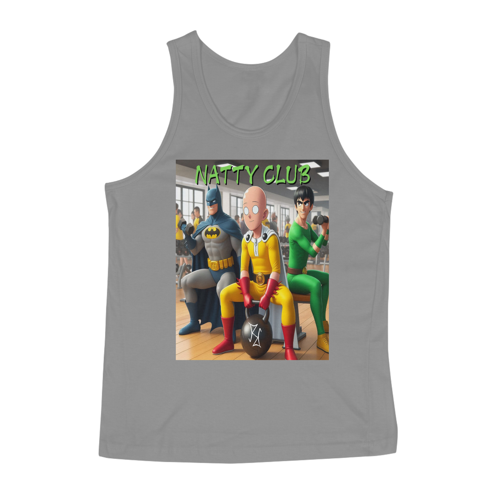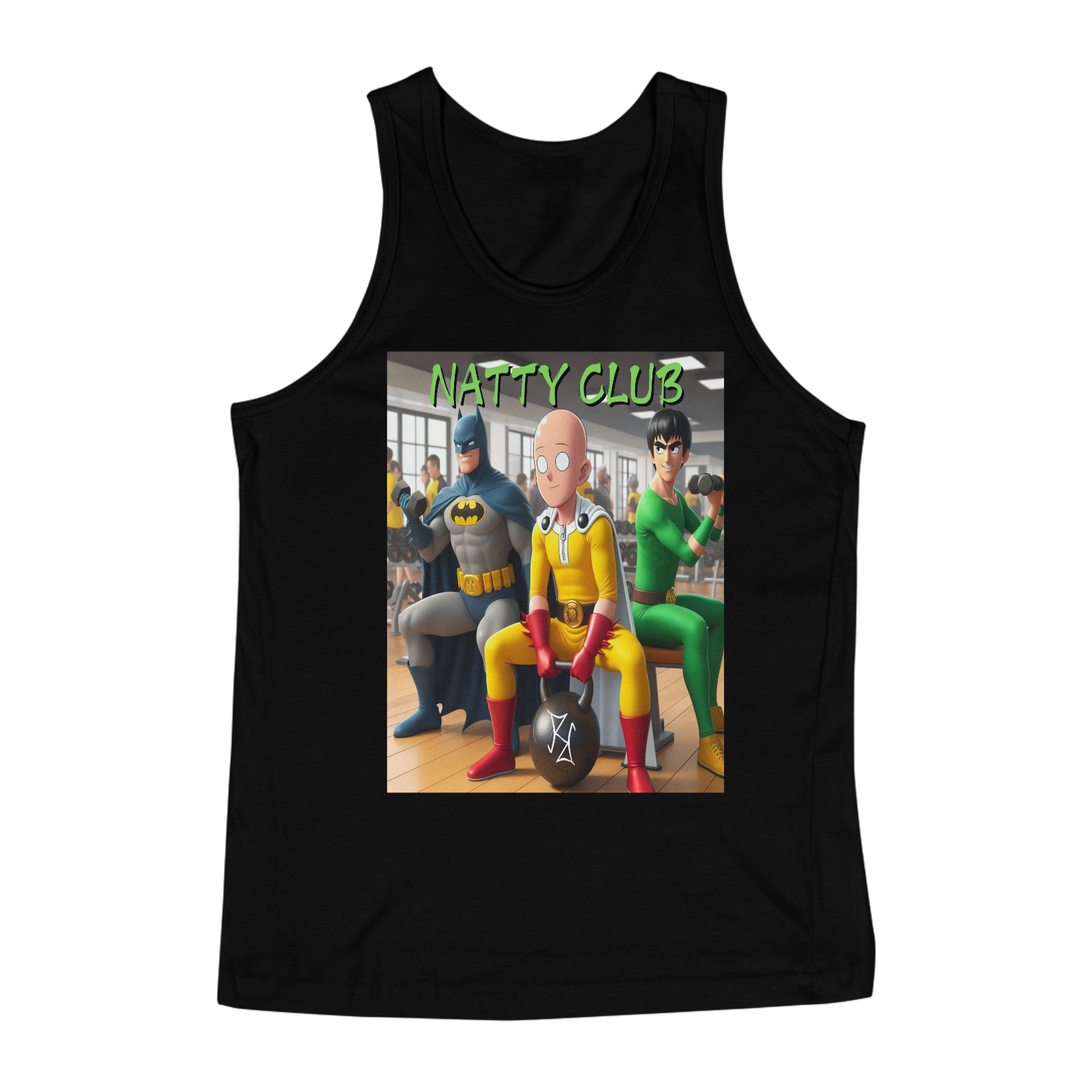Os maiores heróis sabem que força vem da dedicação e treino, não de atalhos. Na camiseta regata Natty Club, o Batman, Saitama e Rock Lee se unem para representar o poder do esforço natural. Com a frase 'Natty Club', essa peça traz um toque de motivação para quem acredita que o trabalho duro e a perseverança são as chaves para conquistar resultados incríveis. Feita em tecido premium, é perfeita para os fãs de cultura pop e para quem leva o treino a sério!