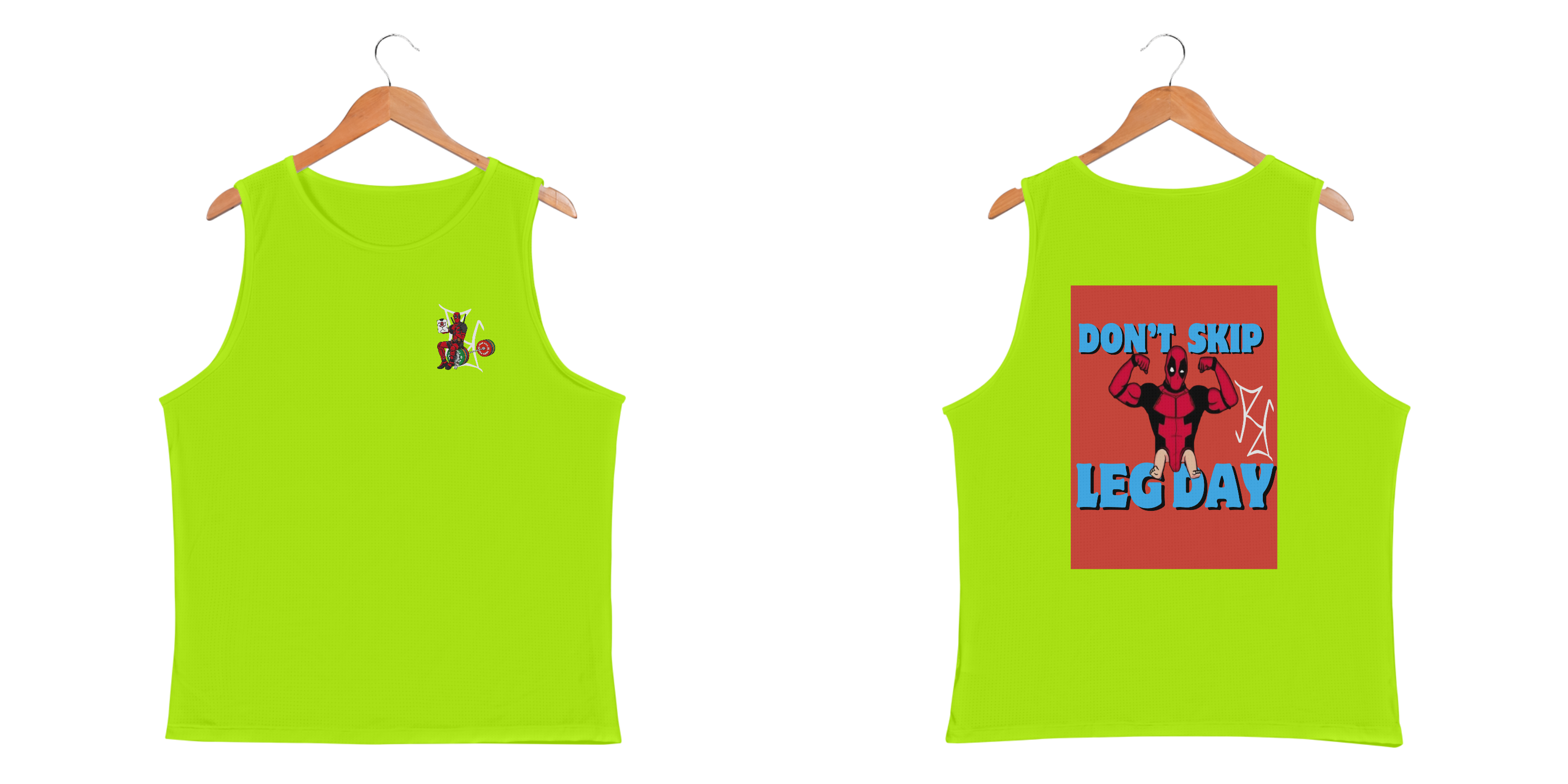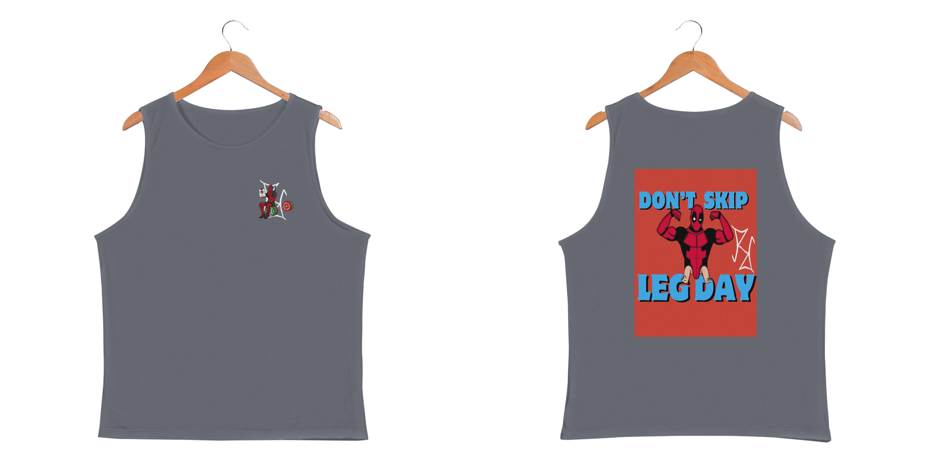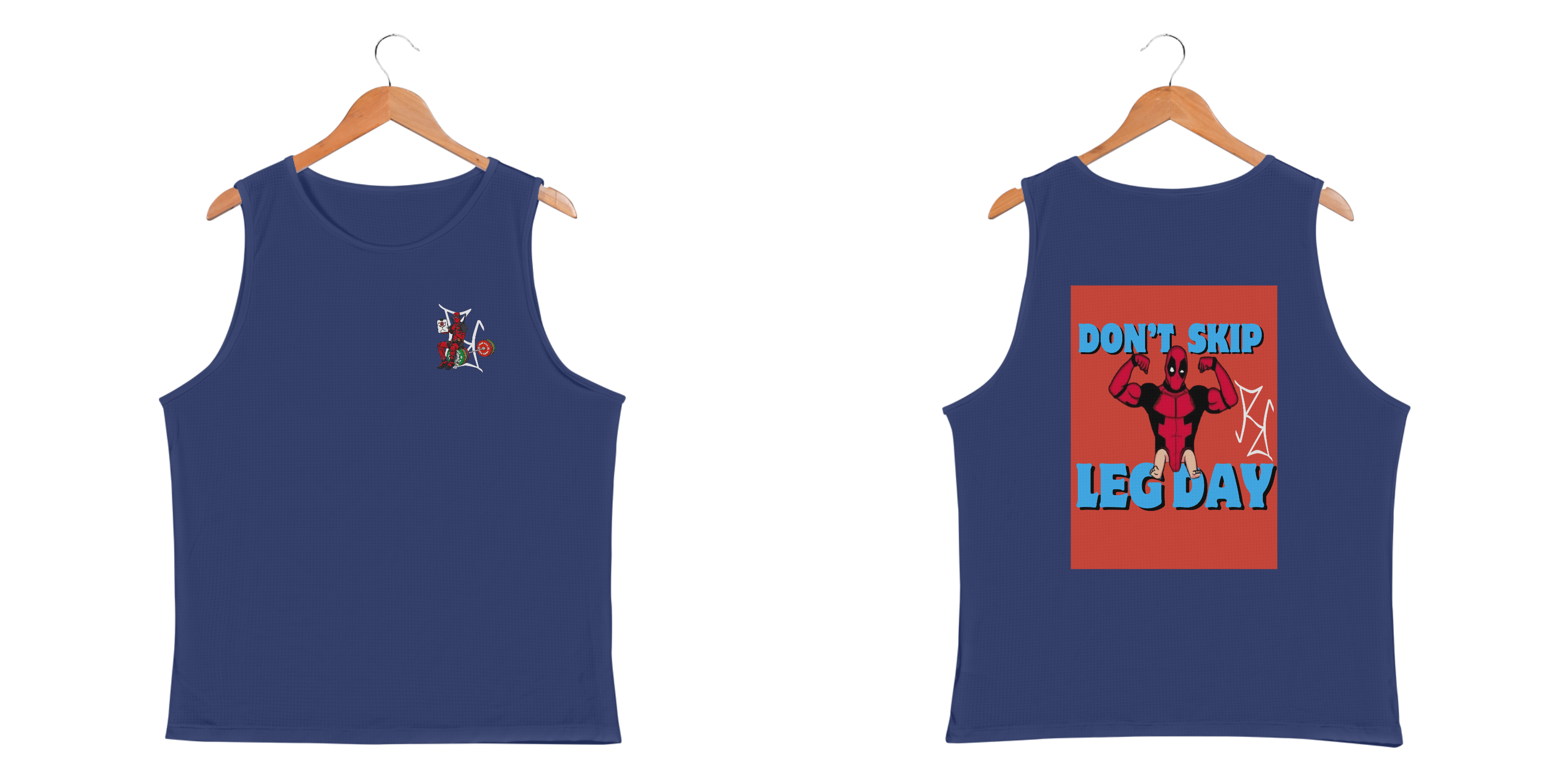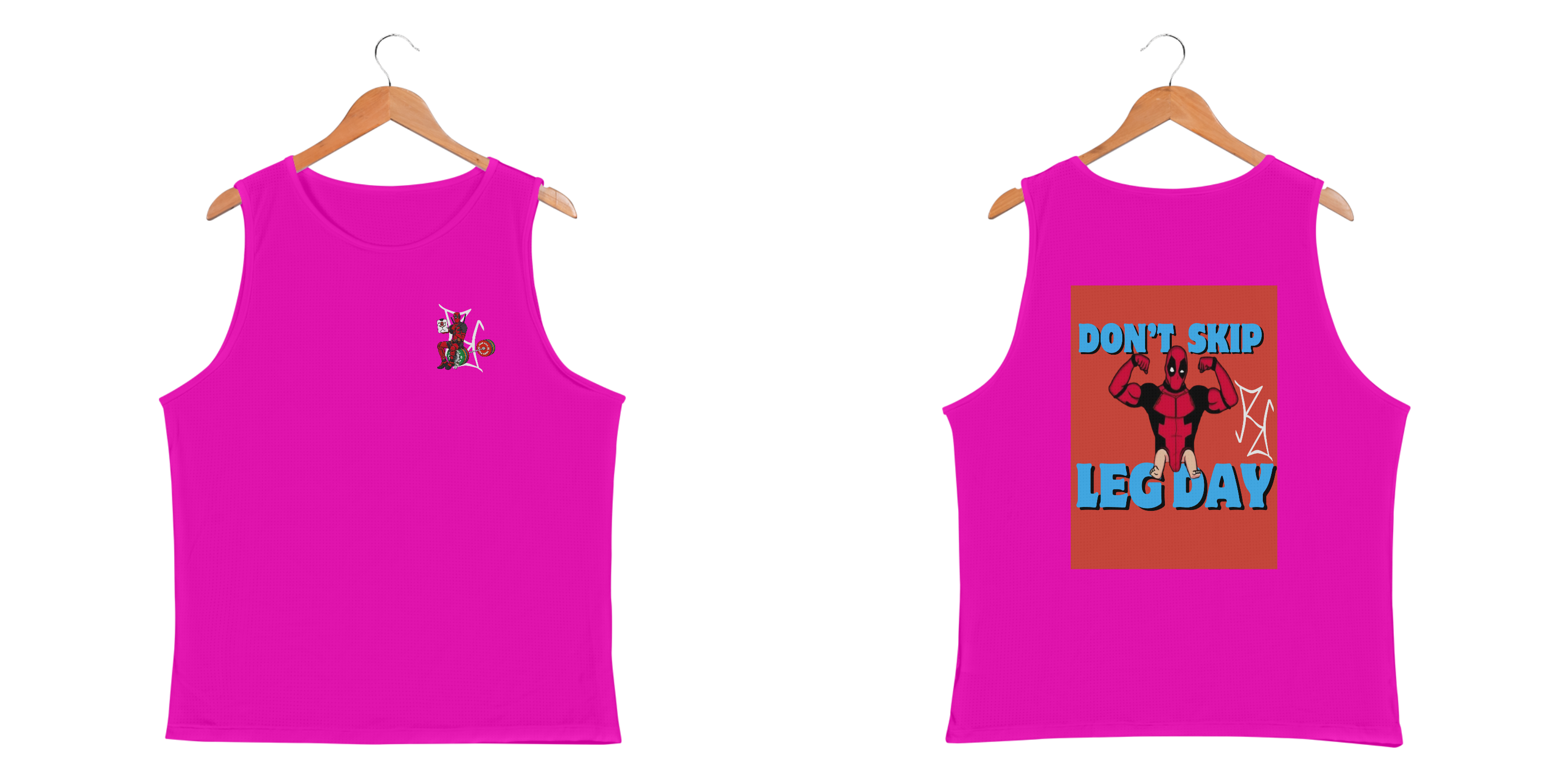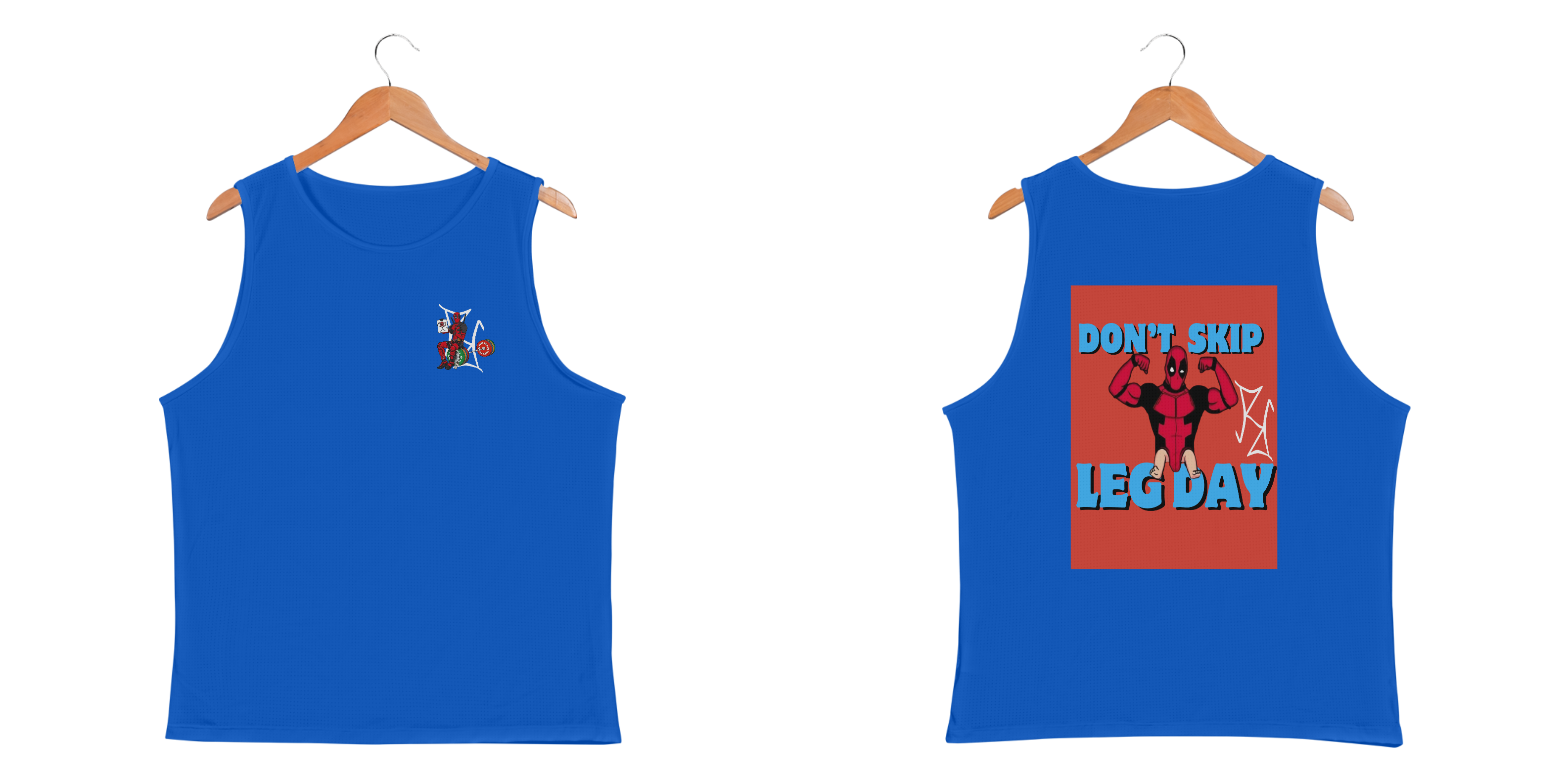 Se tem alguém que sabe como fazer piada até na academia, esse alguém é o Deadpool! Nessa camiseta regata, o mercenário tagarela exibe seu double biceps impecável, mas deixa claro o que acontece quando você pula o leg day: pernas de bebê! Com a frase 'Don't Skip Leg Day', essa peça é perfeita para quem treina com força, mas não perde o bom humor. Feita em tecido premium, oferece conforto e estilo para você arrasar na academia ou no dia a dia. Seja o Deadpool do seu treino, mas sem esquecer as pernas!