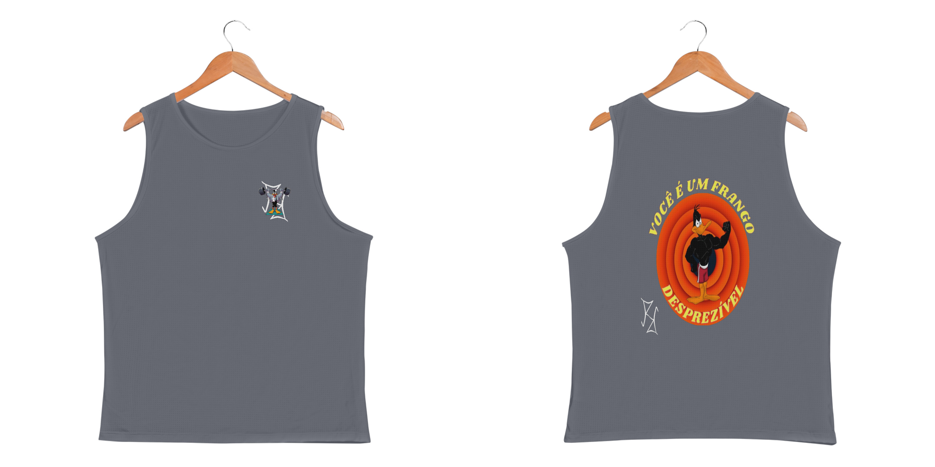 O Patolino nunca perde a chance de mandar aquela direta sarcástica, nem na academia! Nessa camiseta regata, ele aparece no auge da forma física, fazendo um single biceps enquanto solta a icônica frase 'Você é um Frango Desprezível'. Feita para quem tem humor afiado e um shape de respeito, essa peça é confeccionada em tecido premium, garantindo conforto e estilo para treinos pesados ou momentos casuais. Vista sua confiança com essa estampa cheia de atitude!